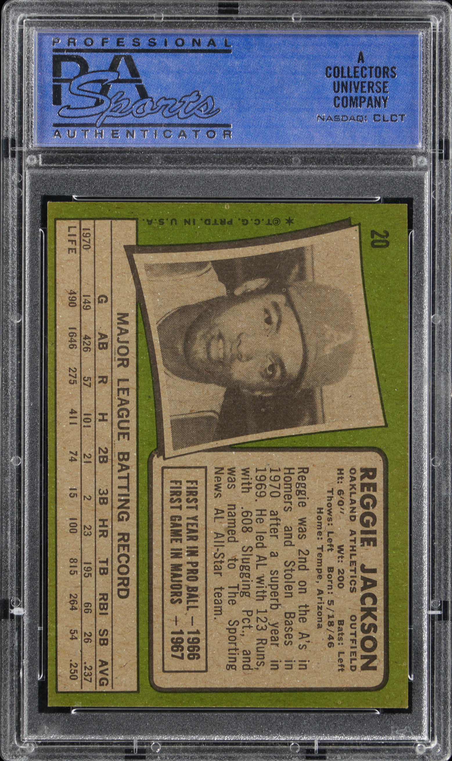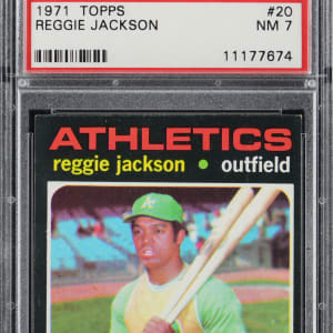 Graded NM 7 by PSA. From the season in which Reggie Jackson literally showcased "light tower power" in the All-Star Game arrives the offered 1971 Topps #20 single. Oakland Athletics Hall of Famer.