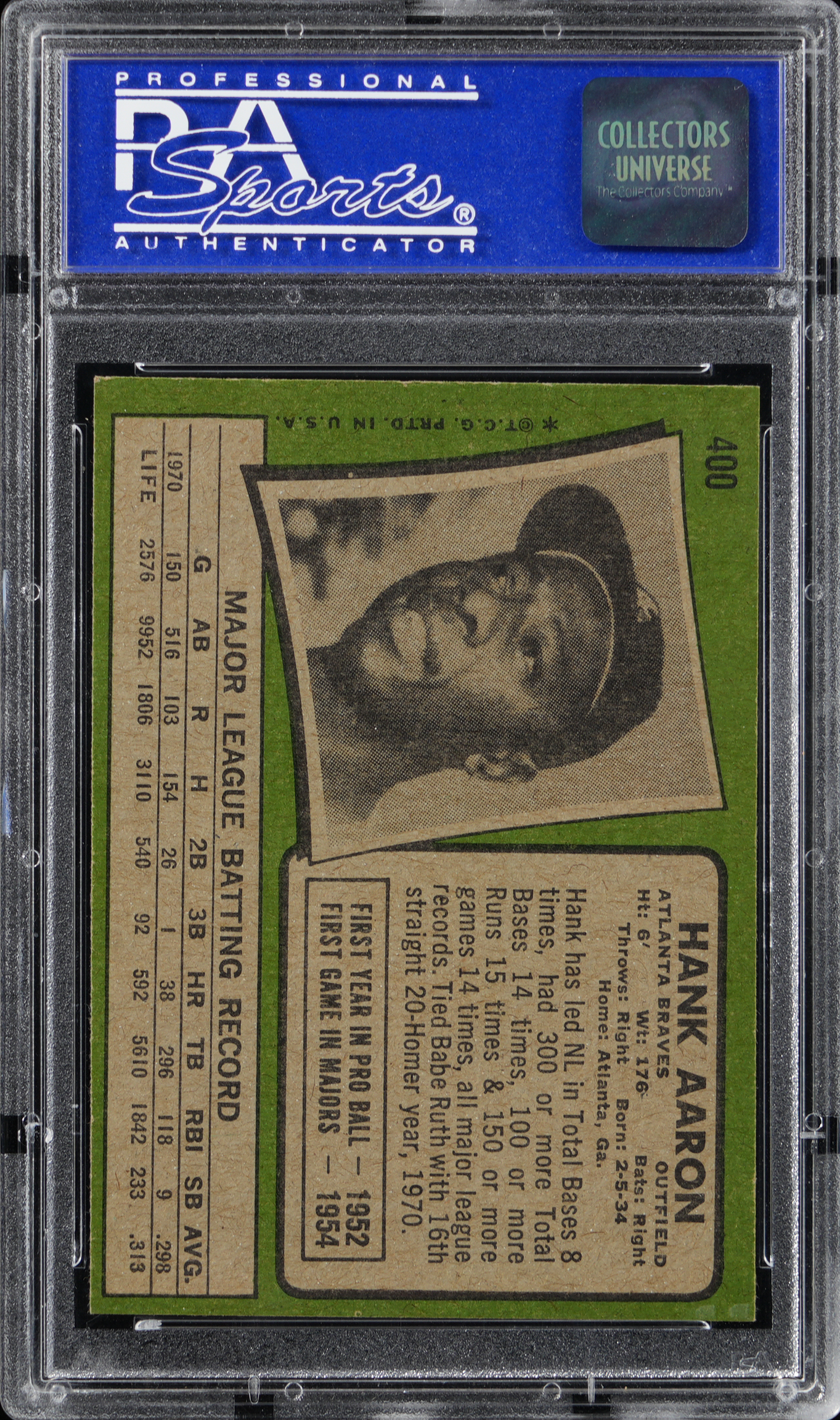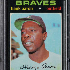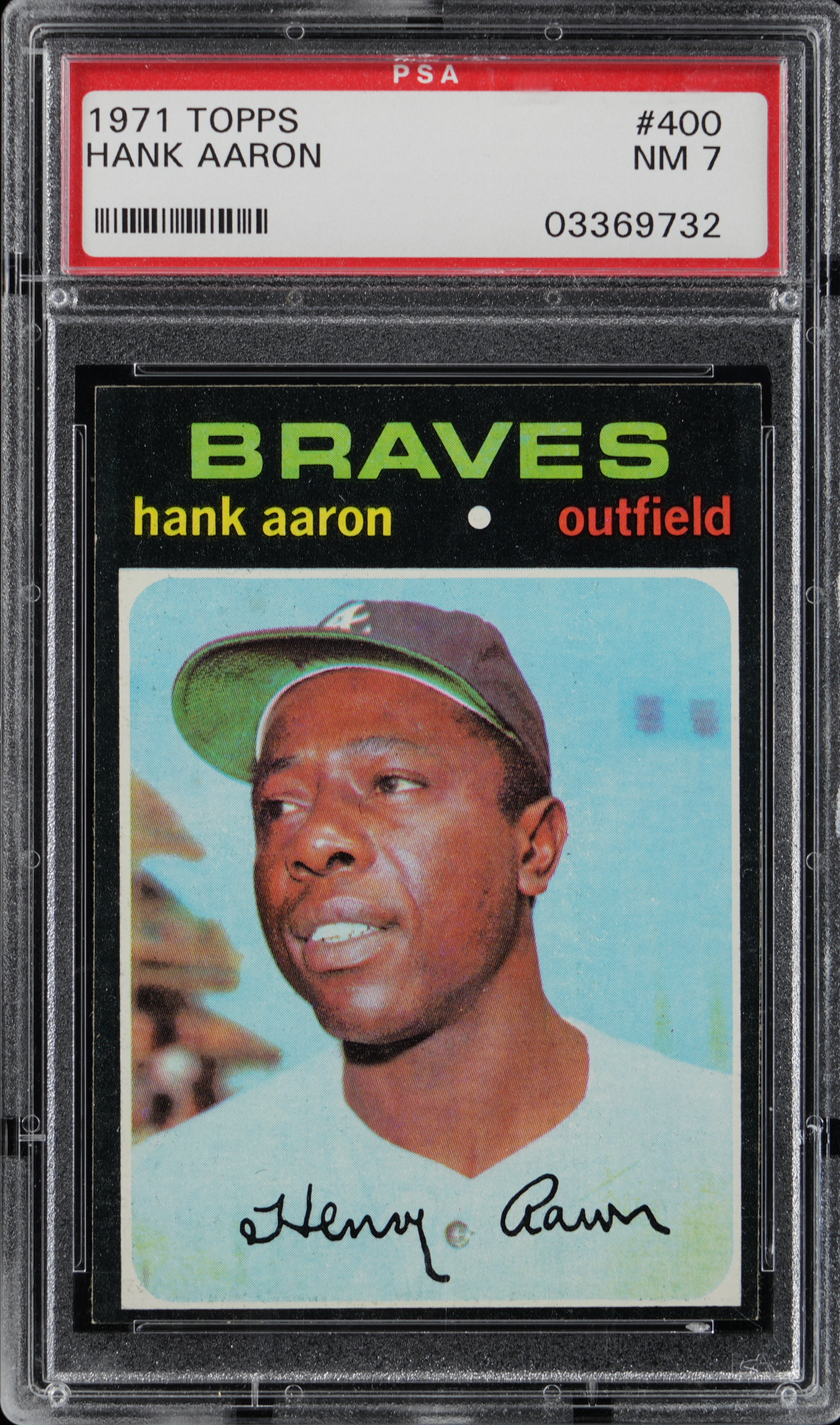 Graded NM 7 by PSA. Atlanta Braves Hall of Fame home run king Hank Aaron.