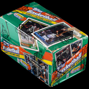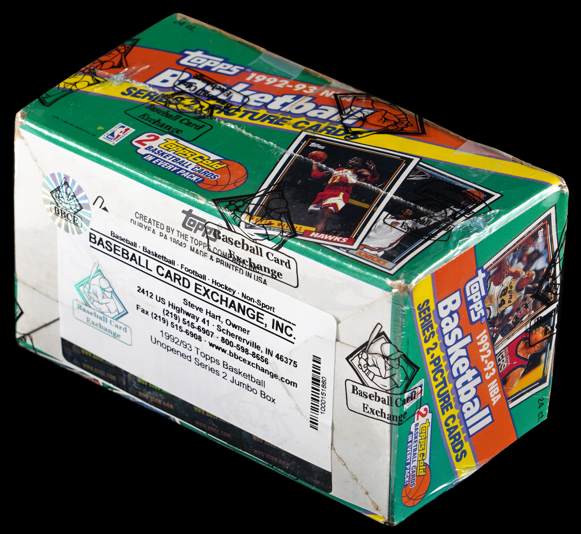 It's a potential "Shaq Attack" with the offered 1992-1993 Topps Basketball Series 2 unopened jumbo box. This unsearched container will deliver (24) 18-card packs with a pair of Topps Gold parallels per. In addition to potential Shaquille O'Neal rookies, find tough Beam Team inserts. The entire box comes shrink-wrapped by Baseball Card Exchange (owned by Steve Hart, the foremost expert on unopened material).