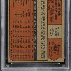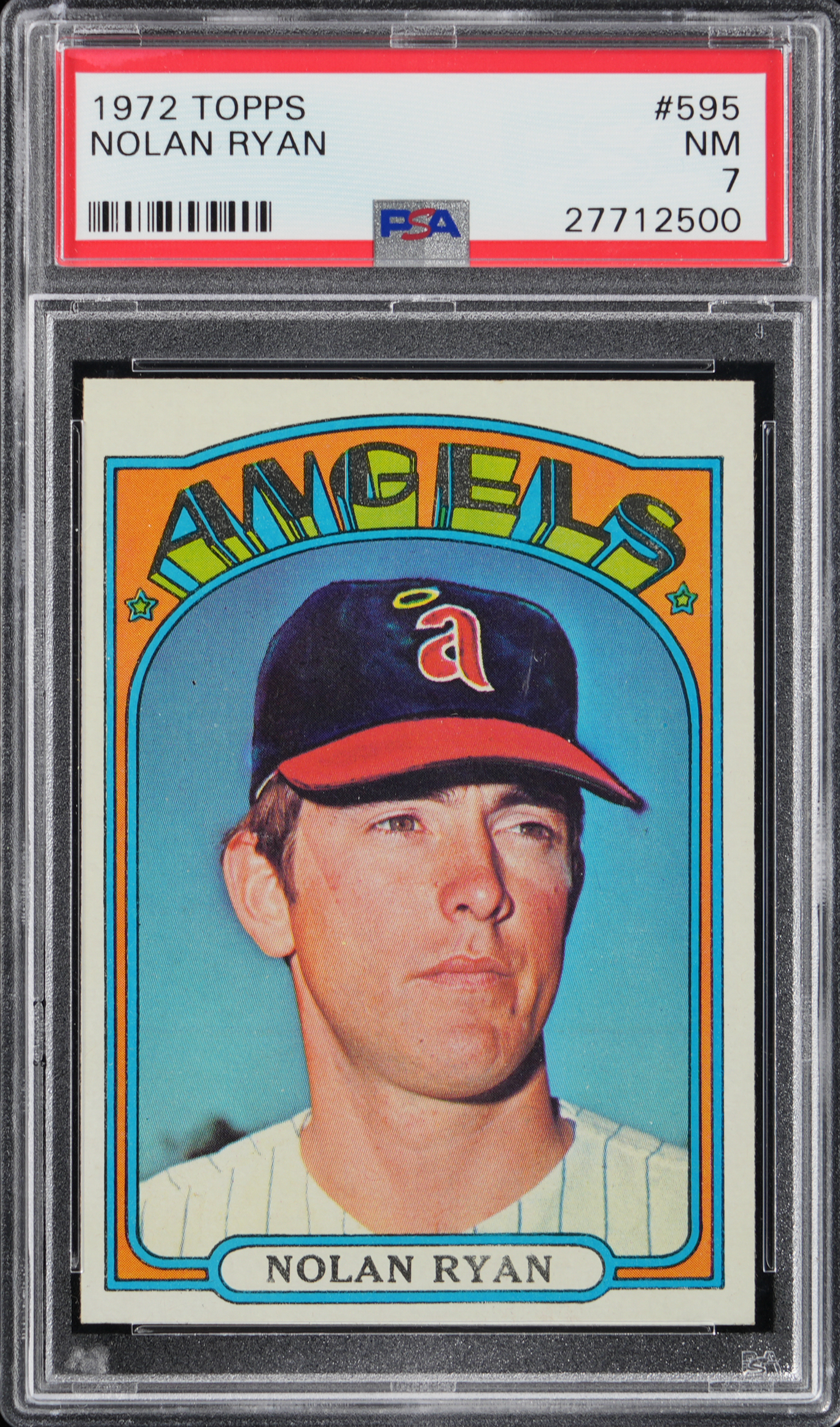 Graded NM 7 by PSA. California Angels Hall of Famer Nolan Ryan's first cardboard appearance with the franchise. Semi-high number.