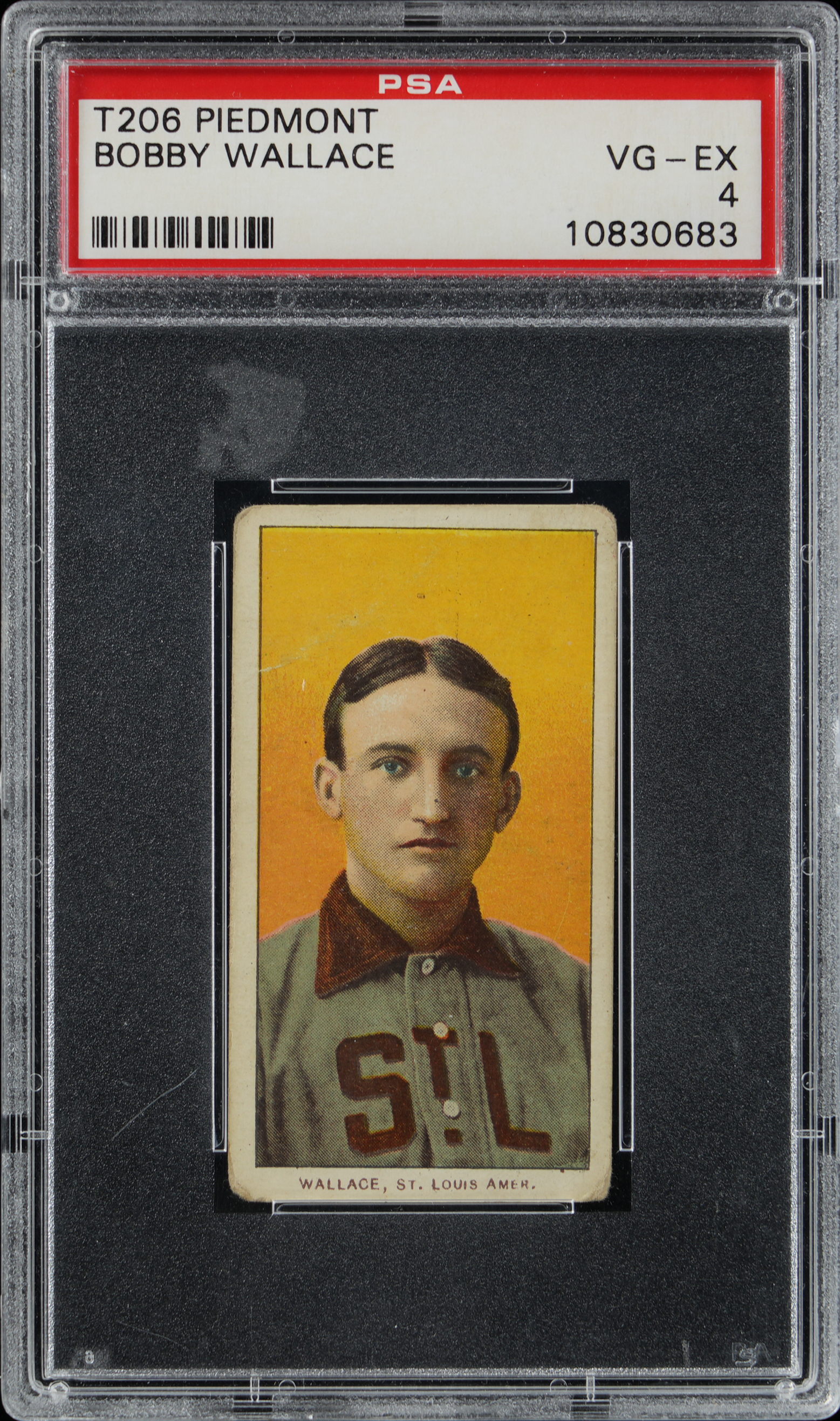 Graded VG-EX 4 by PSA. Roderick (Bobby) Wallace of the St. Louis Browns. It seems unfair that a Hall of Famer with a 25-season career would have only one pose in "The Monster," but such is the case with this mid-grade relic. Piedmont 150 Subjects advertising back.