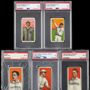 Each graded EX 5 by PSA. These (5) 1909-1911 T206 White Border Minor Leaguers are far from "bush league!" Unless noted, each relic displays a common advertising back. Includes: J. Clark, Grimshaw, Hall (Sovereign 350 Subjects), Kisinger and Oberlin.