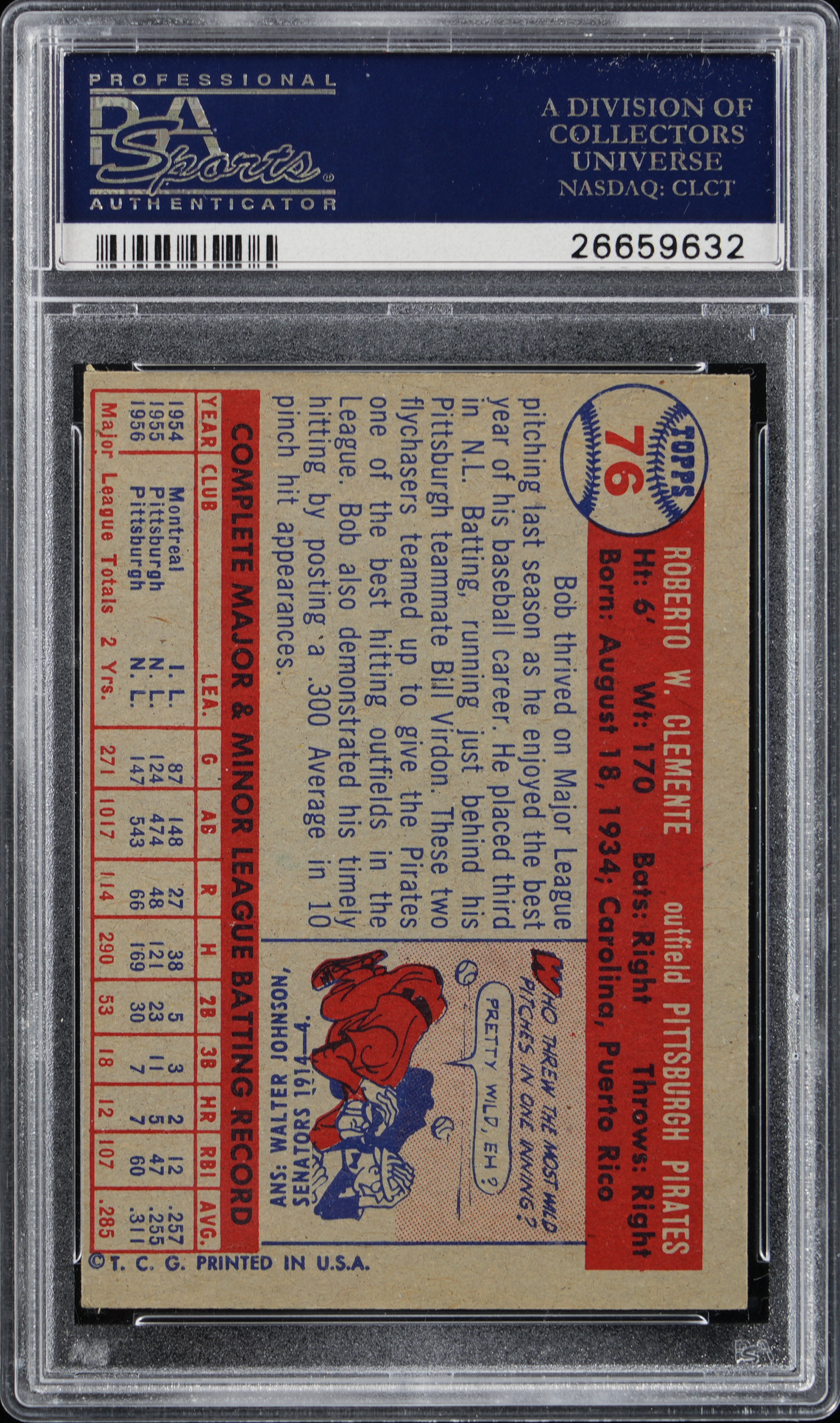 Graded EX-MT 6 by PSA. Pittsburgh Pirates Hall of Famer Roberto Clemente.