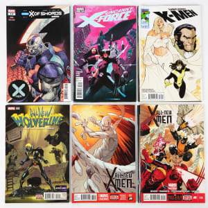 Uncanny X-Men #207 (VF); Uncanny X-Force #1 (NM); Astonishing X-Men #43 (VF); Wolverine #1, 2010 modern re-launch (VF); X-Men World’s Apart #1 (VF); Savage Wolverine #1 (NM); X-Men #1, first issue re-launch (NM) and X-Men #8, 2020 modern-age story line.
