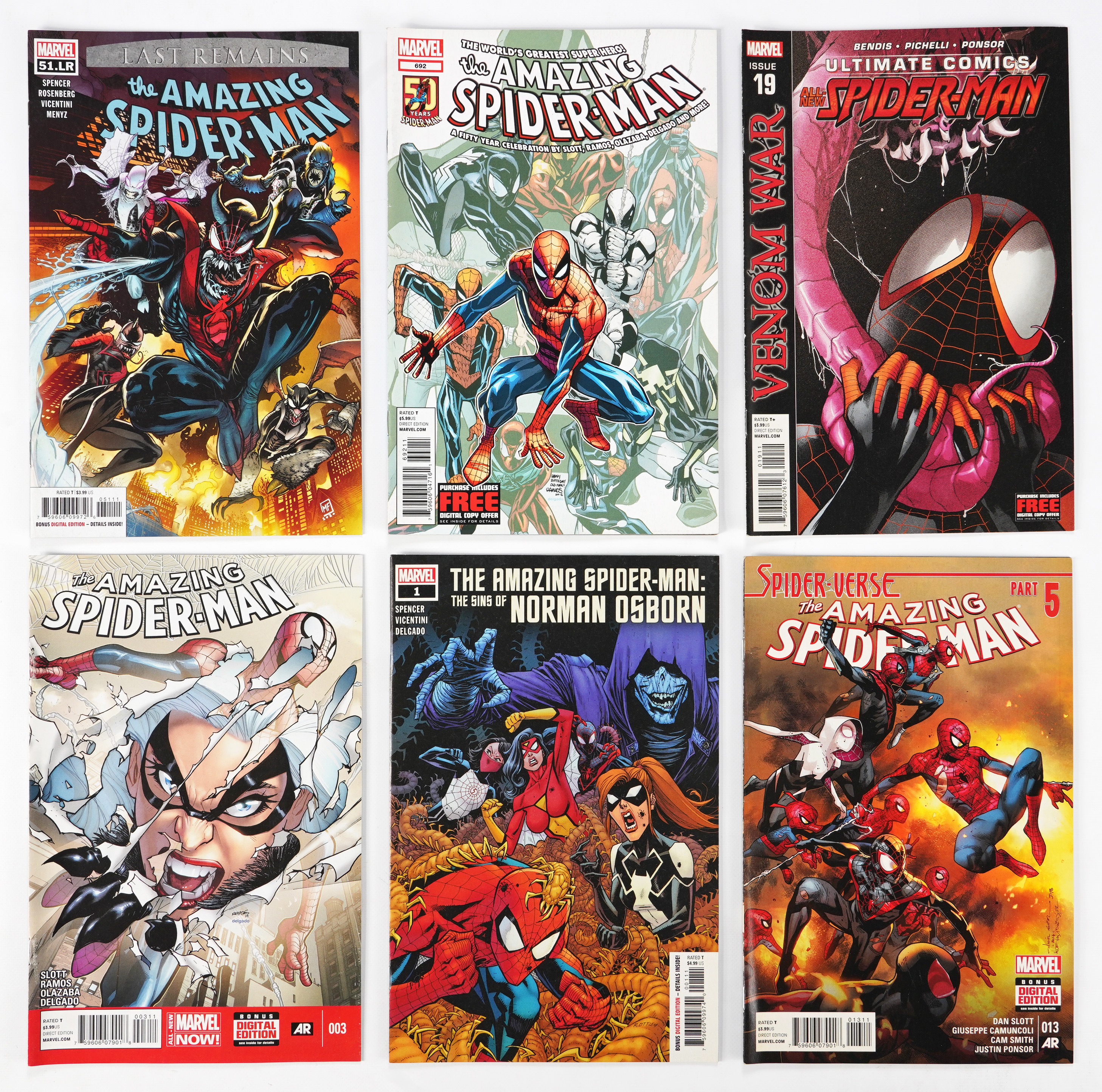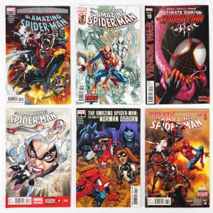 This substantial group of (296) mostly different comics chronicle the adventures of Peter Parker, Miles Morales, the Spider-Verse and beyond. Includes the following titles: