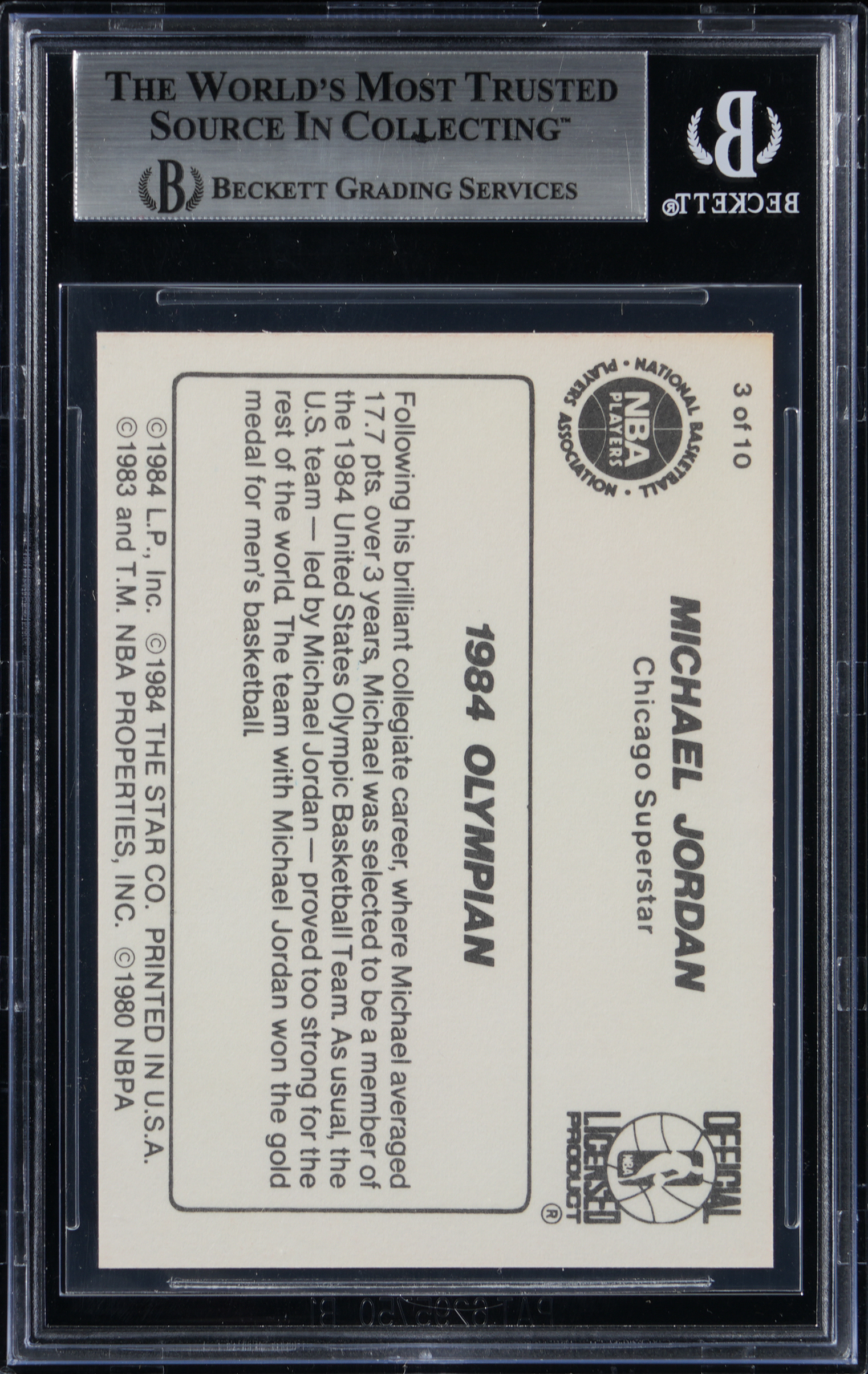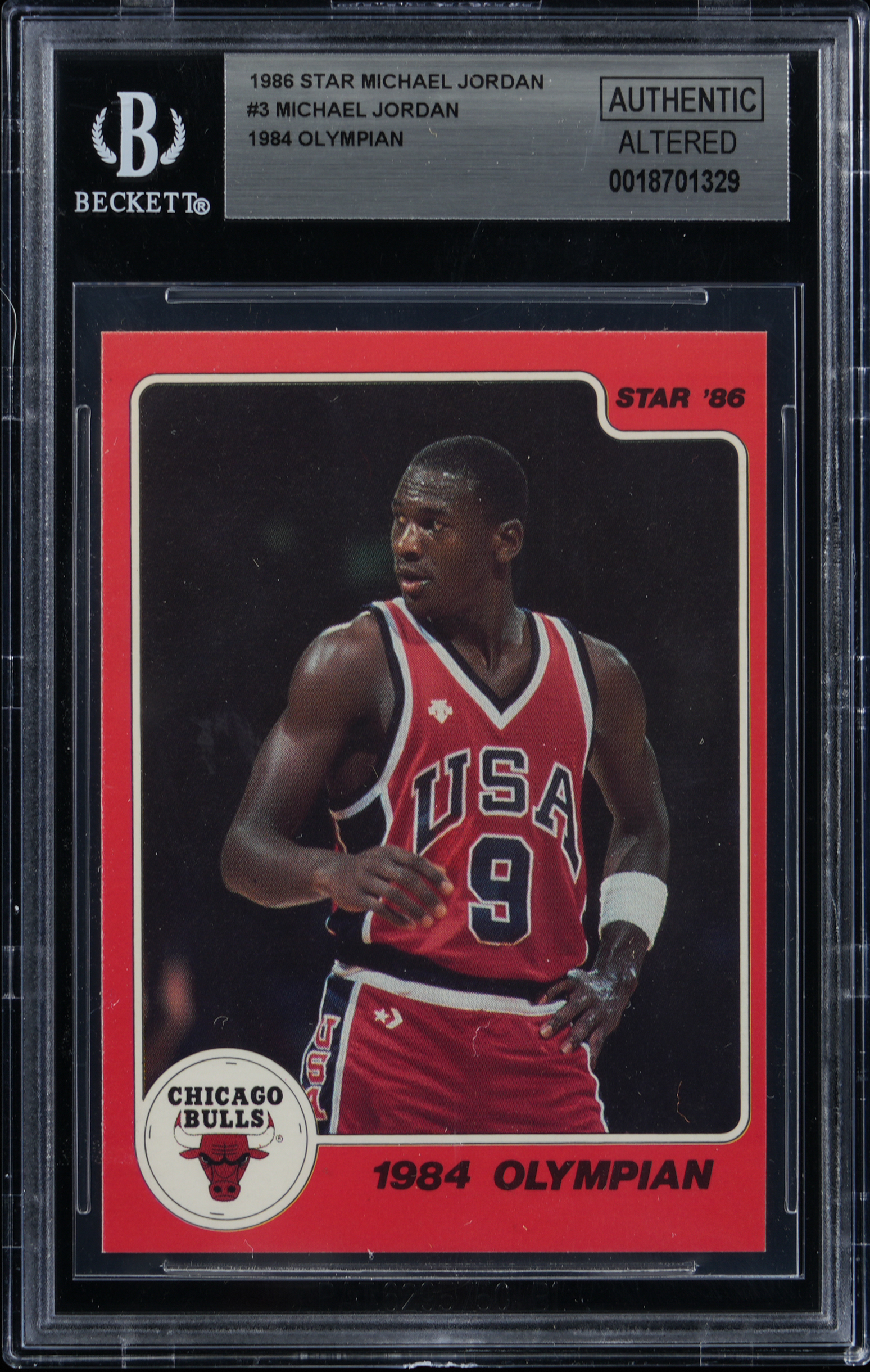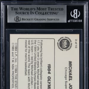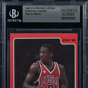 Graded Authentic-Altered by BGS. Part of a set break from the 1986 Star Basketball Michael Jordan 10-card player issue. Card #3 "1984 Olympian."