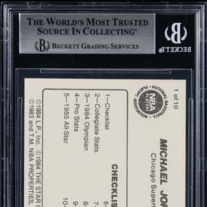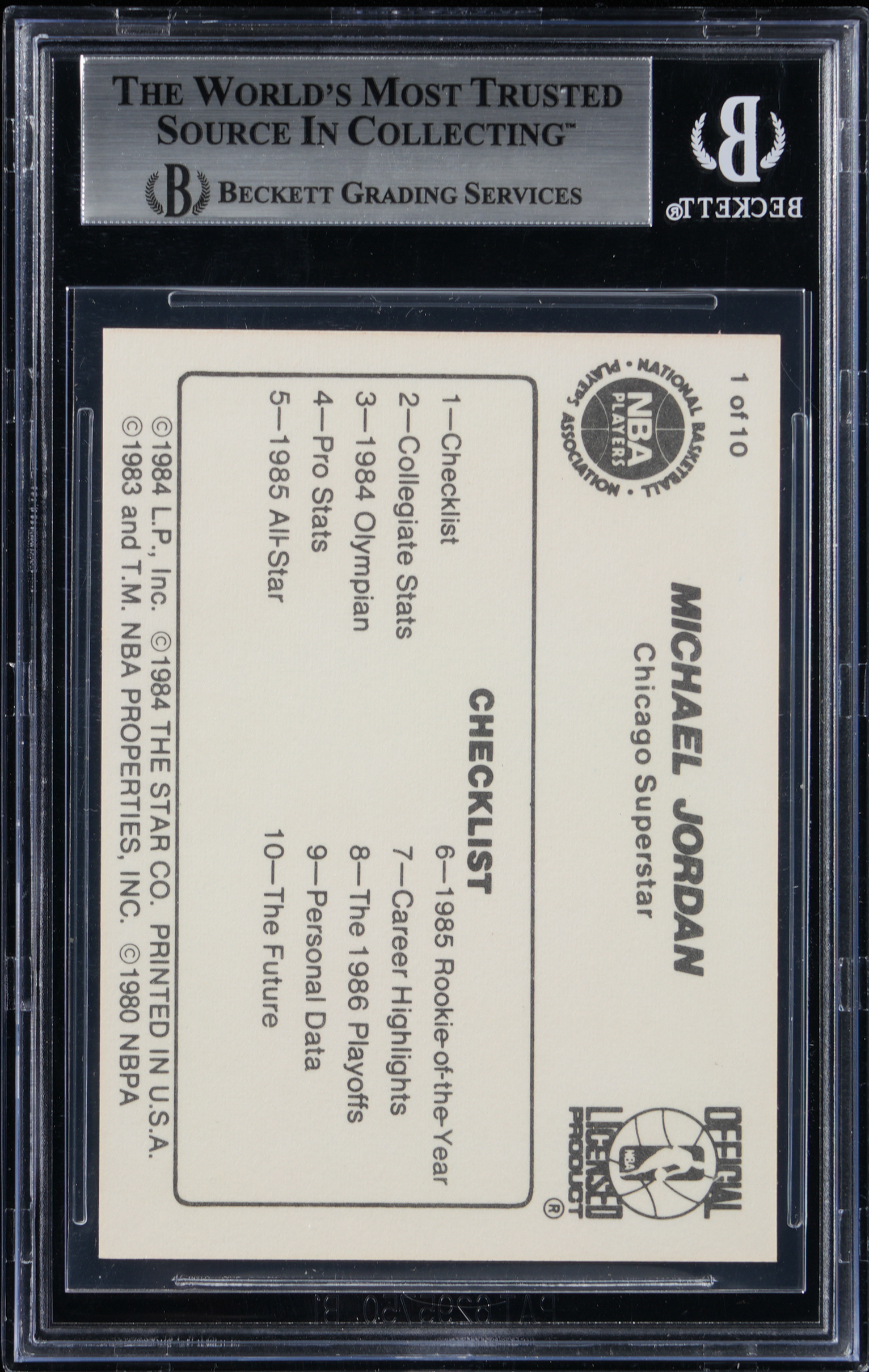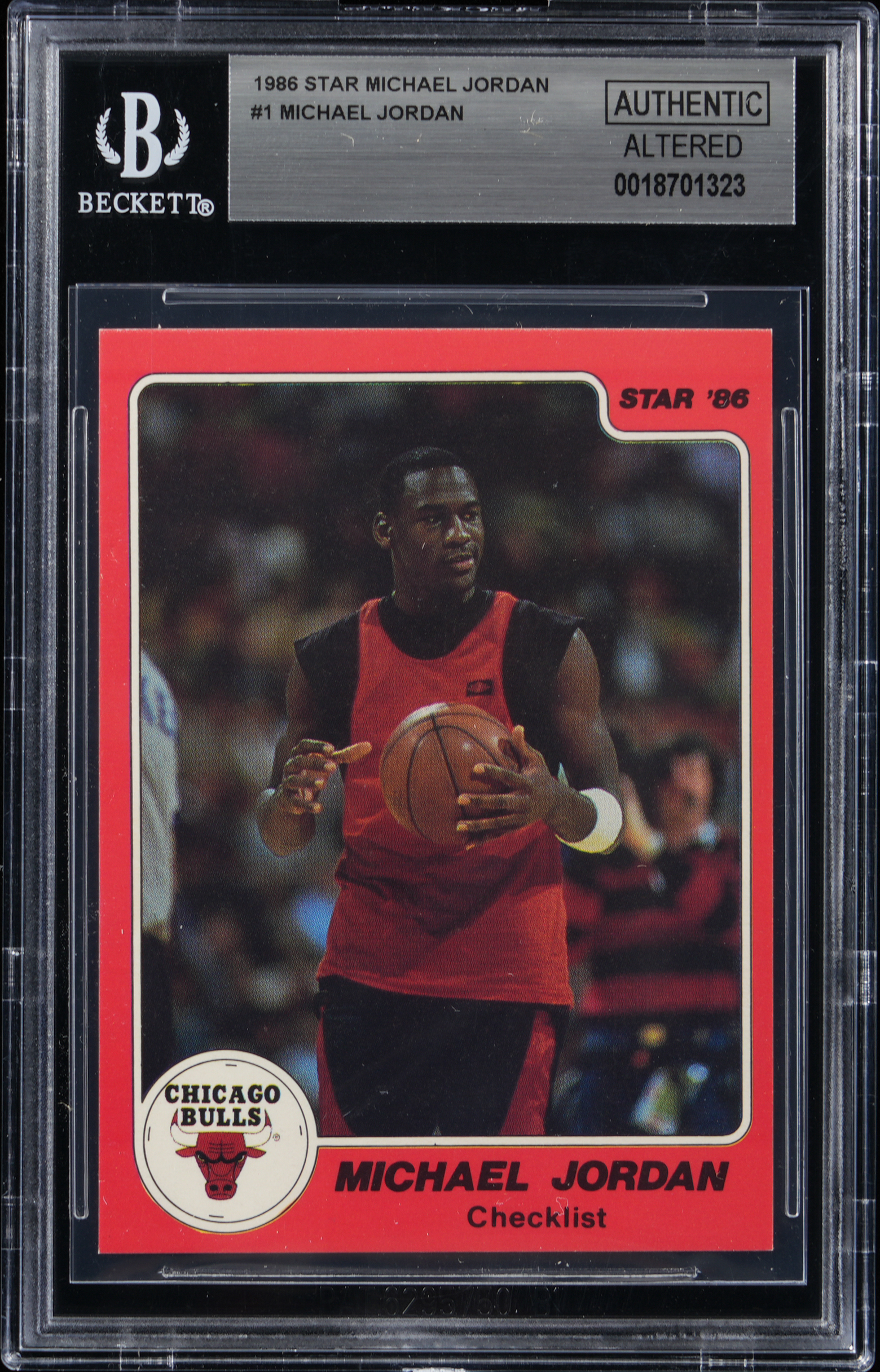 Graded Authentic-Altered by BGS. Part of a set break from the 1986 Star Basketball Michael Jordan 10-card player issue. Header card #1 "Checklist."