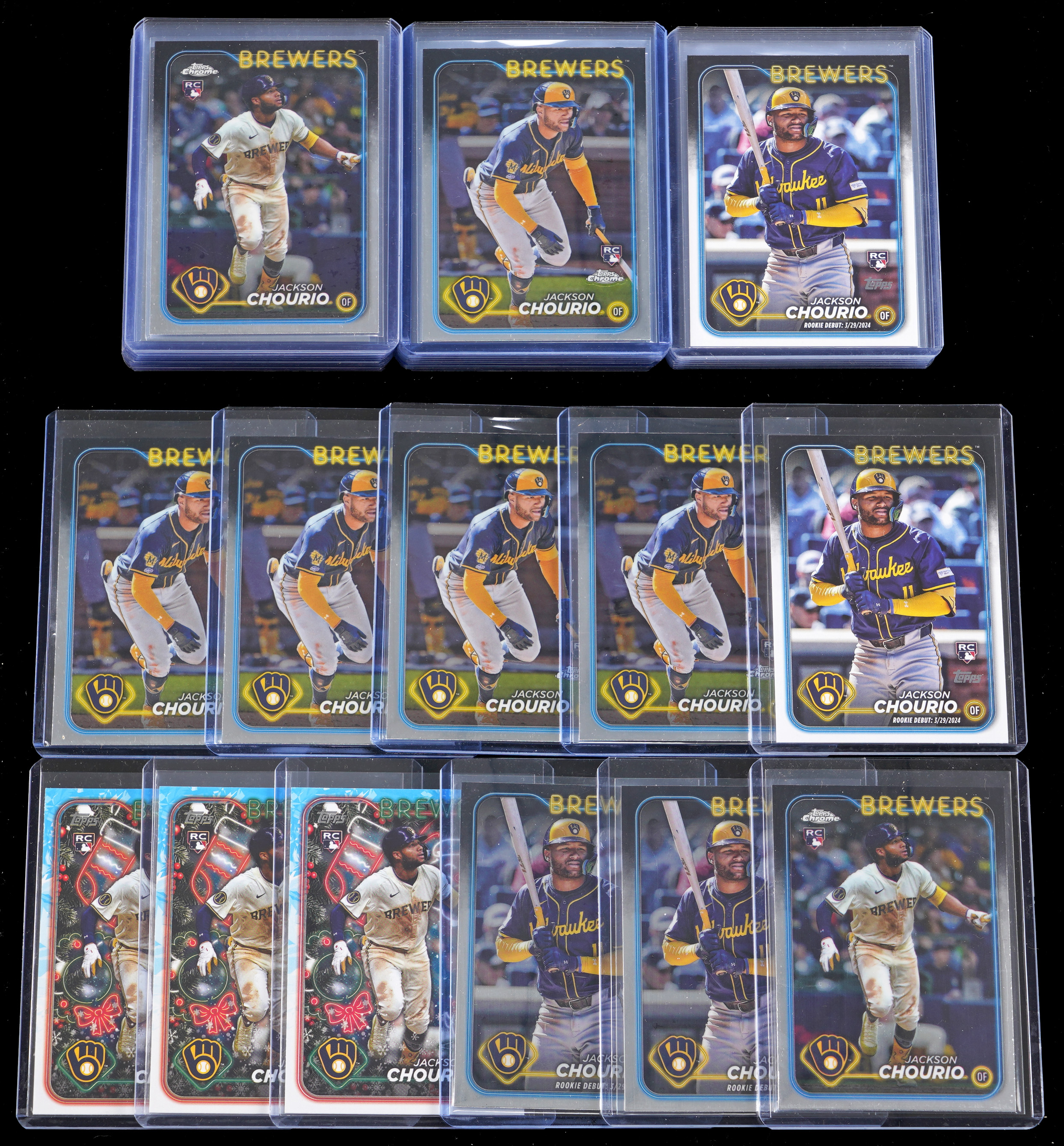 The future is bright for young Milwaukee Brewers star Jackson Chourio. Get in on the ground floor with these (172) 2022-2025 Topps and Bowman rookie cards featuring a wealth of refractors and parallels. Includes: