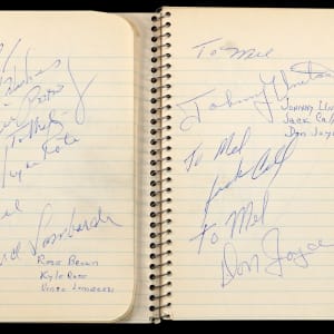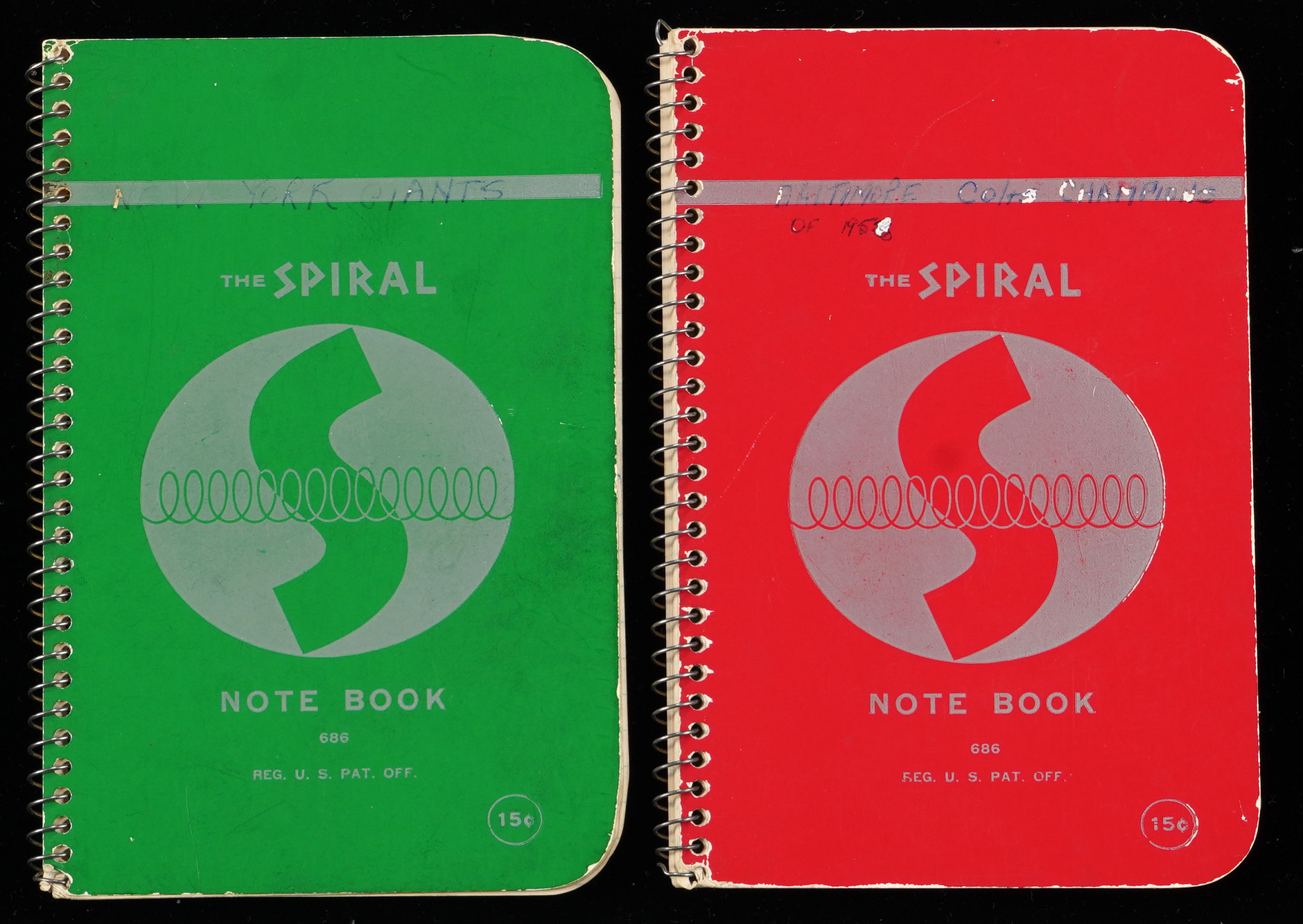 The offered spiral bound books are readily distinguishable, as the Colts book with (37) signatures has a red cover, while the Giants book with (40) signatures sports a green cover. A combined total of (77) signatures from the two teams includes (15) Hall of Famers with Vince Lombardi, Tom Landry. Johnny Unitas, Frank Gifford, Emlen Tunnell, Lenny Moore, Don Maynard, and Gino Marchetti, and many popular stars with Jack Kemp, “Big Daddy” Lipscomb, Pat Summerall, and Alan Ameche. Reported as having been obtained on the day of the 1958 NFL Championship game, these signatures are generally sharp, though a very small number are a bit soft.