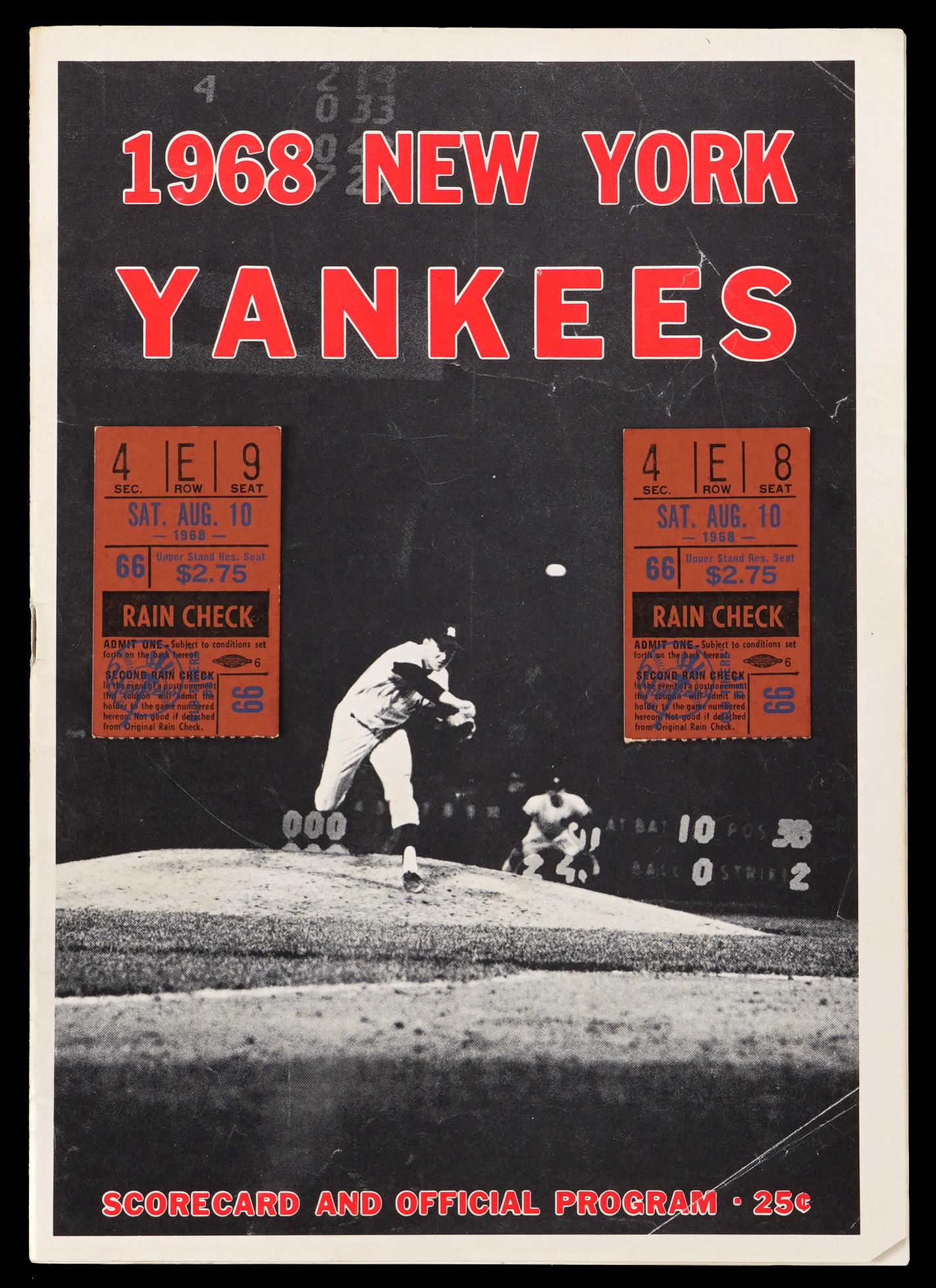 In the twilight of a legendary career, on August 10th, 1968, Mickey Mantle clubbed solo home runs #530 and #531 as the Minnesota Twins defeated the New York Yankees by a 3-2 score. It was the final multi-home run game for the Hall of Famer as he would retire from the game just months later. Offered is a creased, but neatly pencil marked game program and a pair of Upper Stand Reserved Seat ticket stubs (EX-MT, EX) from the contest.