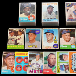 1963 Topps Mets: (30 cards, average EX to EX-MT, includes 8 high numbers) with #68 Snider/Hodges (VG), #233 Stengel (EX-MT), #245 Hodges (EX), #550 Snider (EX), #562 McNally RC (VG);
