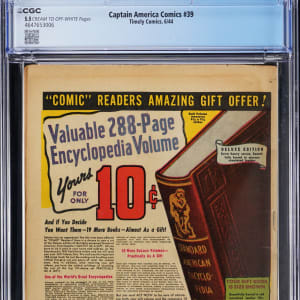High-grade examples of Captain America Comics from this period are notoriously scarce, as wartime paper drives and heavy readership greatly reduced surviving numbers. This CGC 5.5, Cream to Off-White Pages copy presents with vibrant color saturation, strong page quality, and solid structural integrity for the issue’s age. Mid-grade copies of pre-#50 Captain America Comics issues remain extremely desirable among Timely collectors and Golden Age enthusiasts alike, representing the purest intersection of pop-culture iconography and wartime Americana. A superbly balanced, eye-appealing example — ideal for any collector seeking a strong representative of one of Timely’s flagship Golden Age titles.