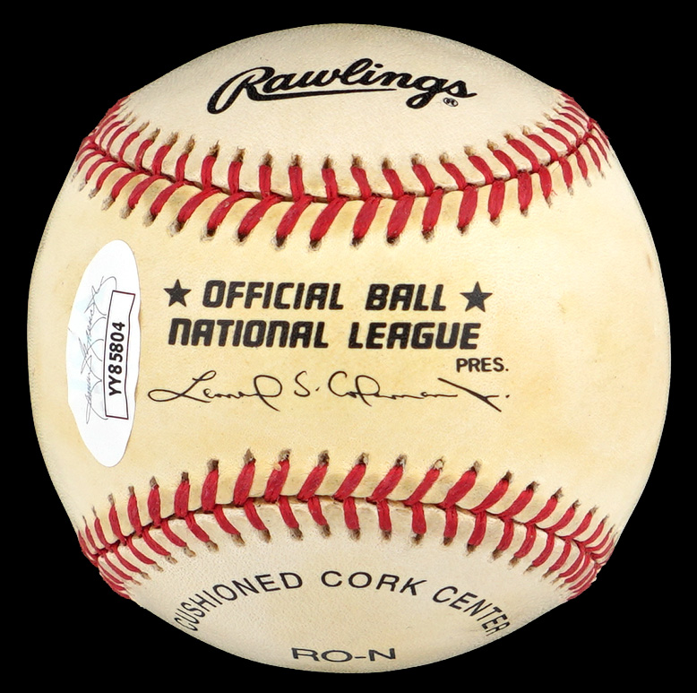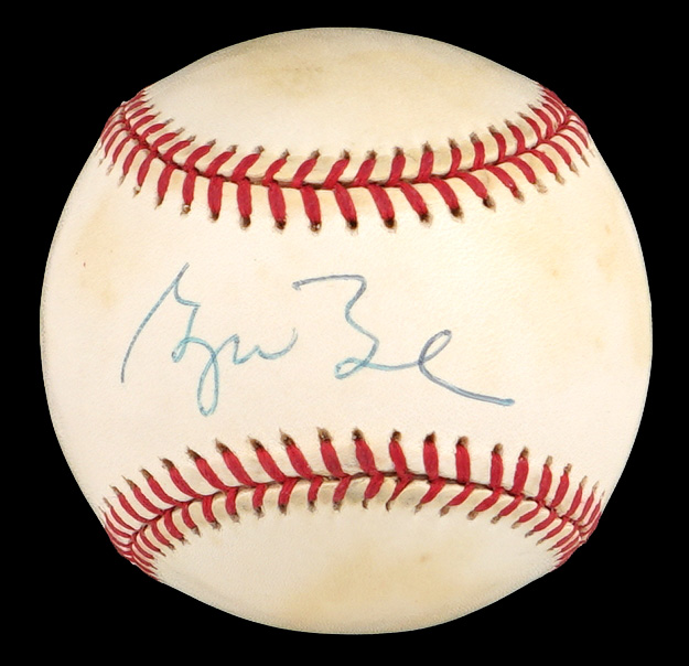 Presented is a lightly-toned ONL/Coleman baseball, handsomely signed by George W. Bush, 43rd President of the United States. This distinctive presidential signature is desirably located on the sweet spot, providing appreciable display appeal. With "Bush the Younger" having served in the Oval Office, and as an executive/minority owner with the Texas Rangers, this single-signed baseball doubles as a sweet prize for both political and baseball collectors.