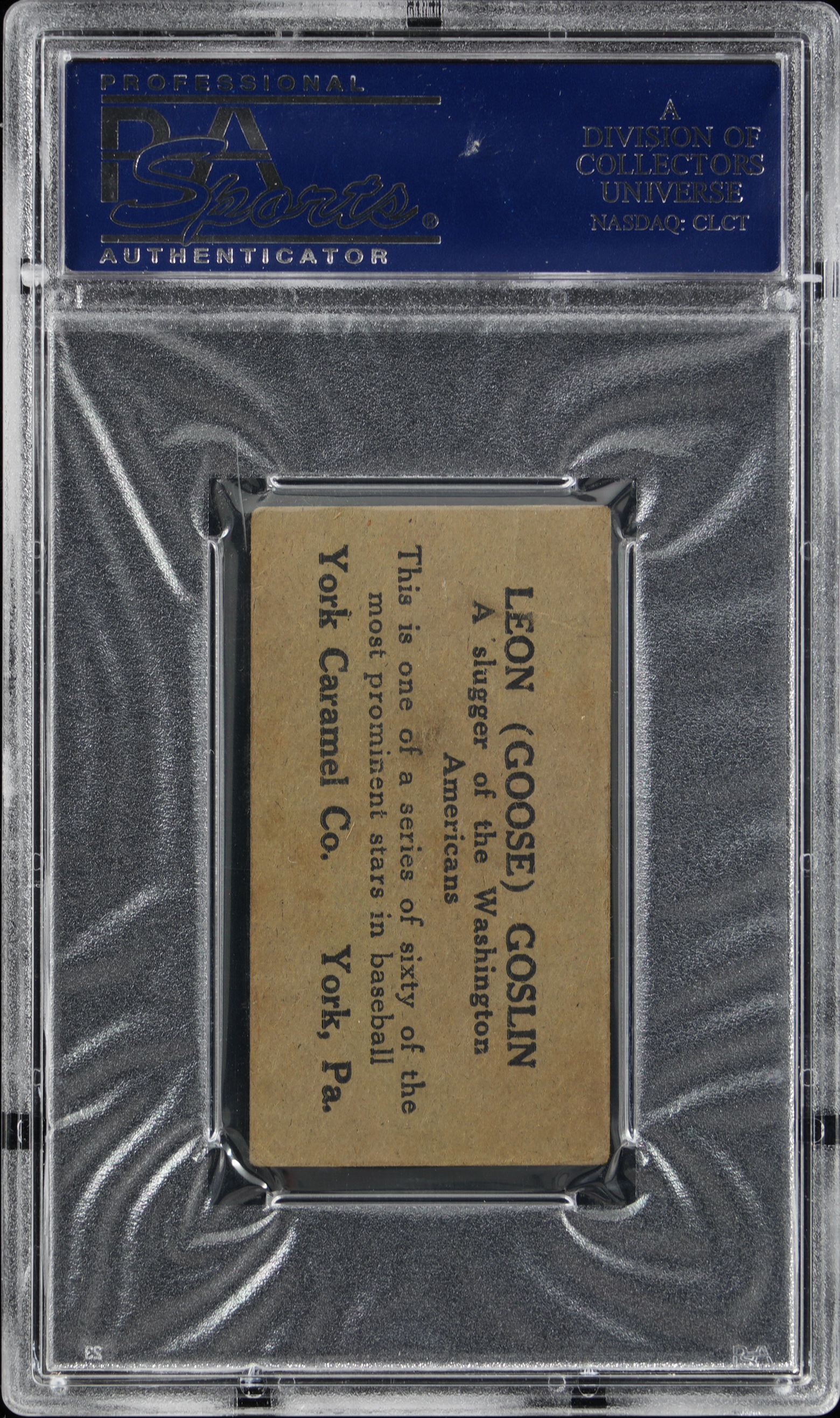 Graded VG 3 by PSA. Washington Senators Hall of Famer Leon (Goose) Goslin. Type 1 variant.