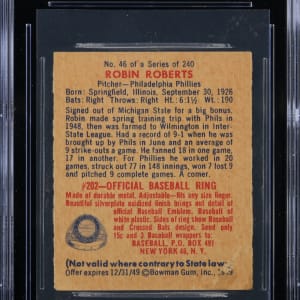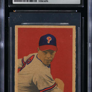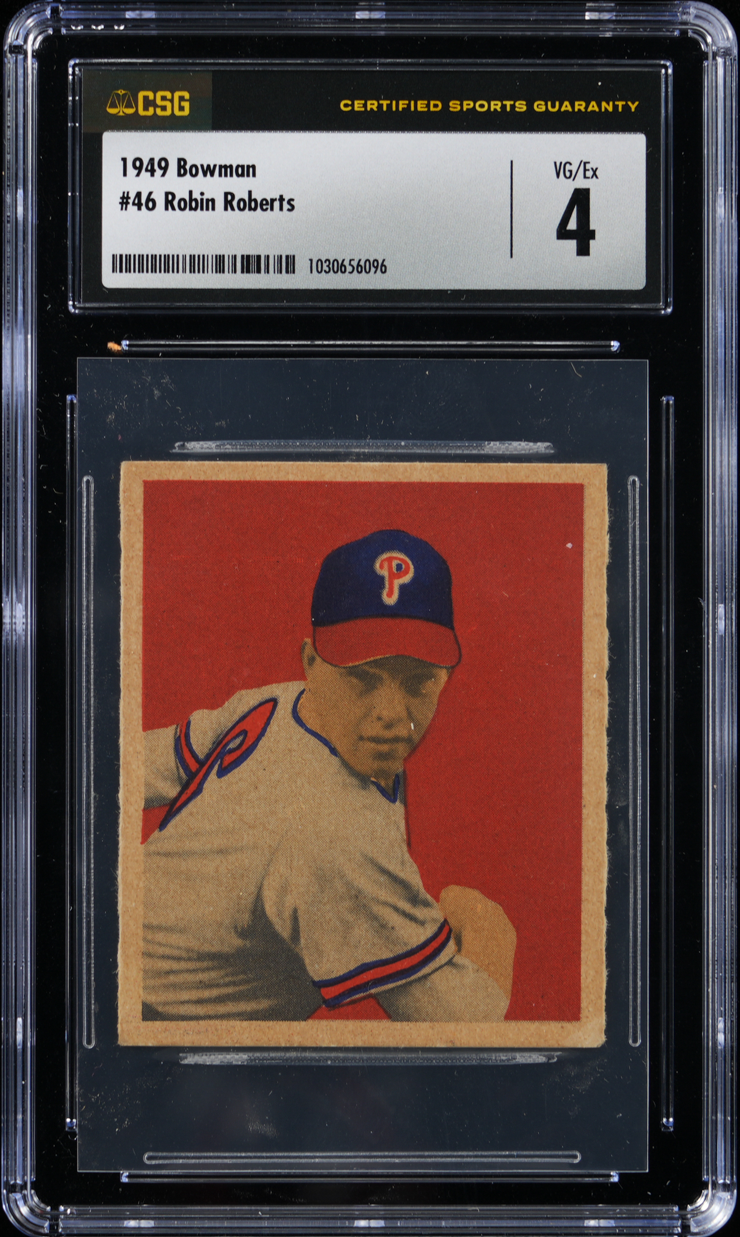 Graded VG/EX 4 by CSG. A key late 1940s rookie card of Philadelphia Phillies Hall of Famer Robin Roberts.