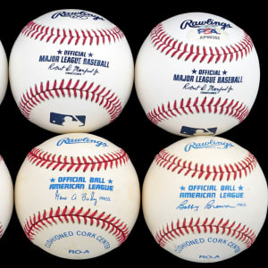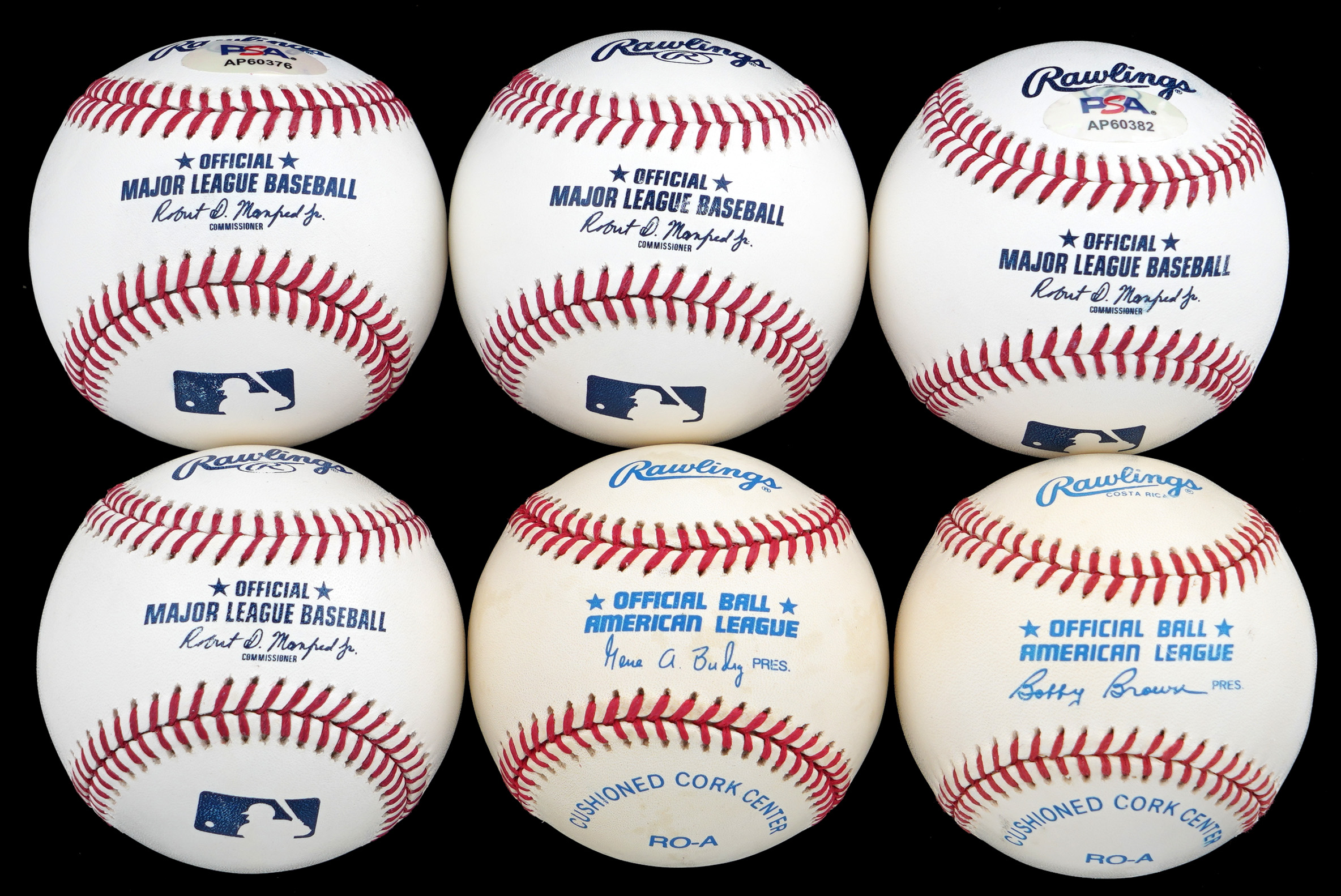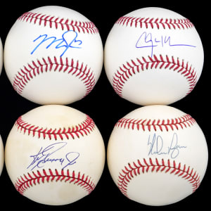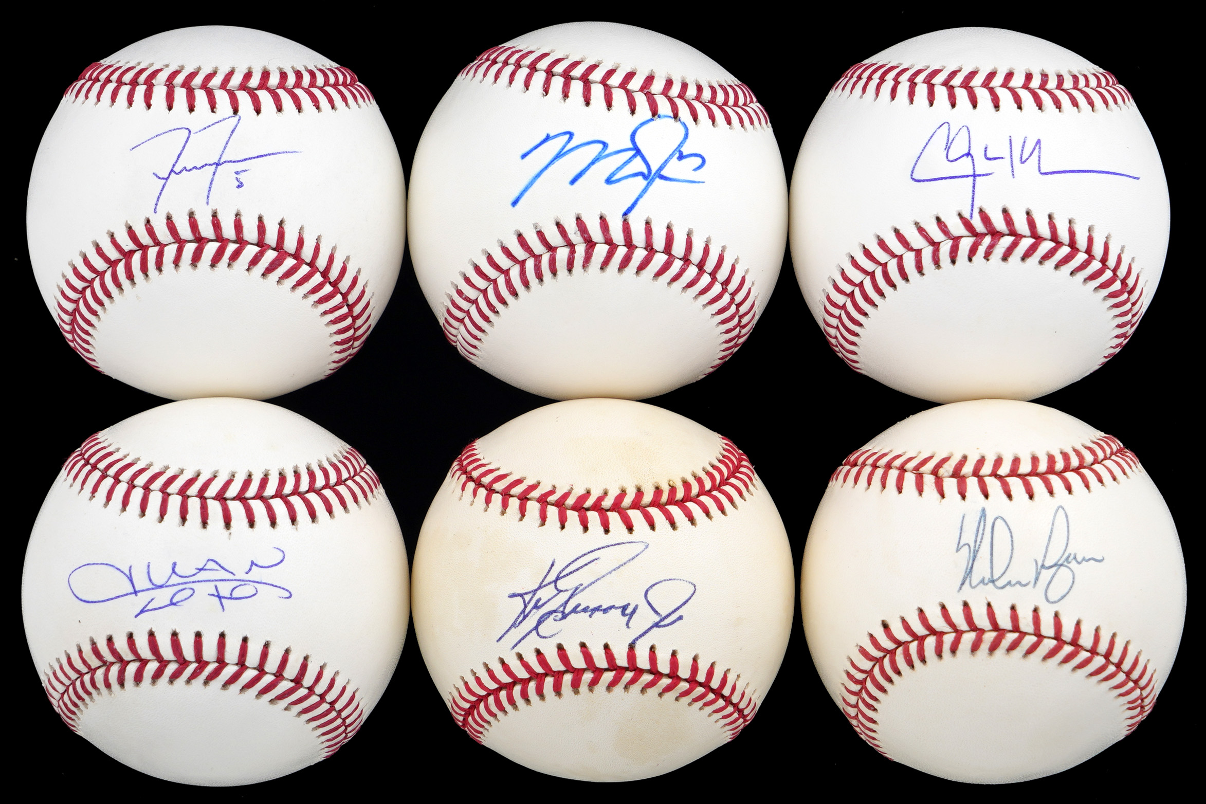 These (6) single-signed white baseballs feature signatures averaging (“9-10”).
