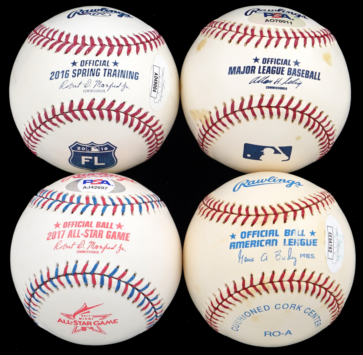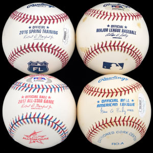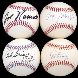 These NFL Hall of Fame quarterback signed baseballs get a “Perfect Passer” rating as the four baseballs average near-white to white, the signatures average (“9-10”), and all have impeccable provenance.