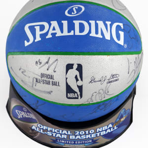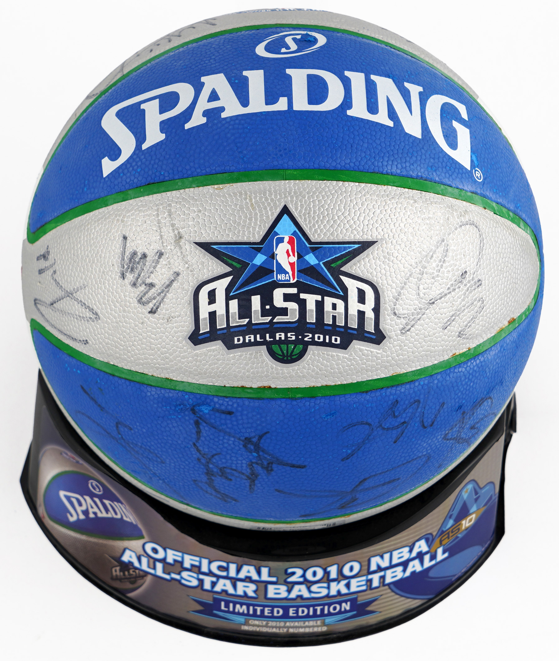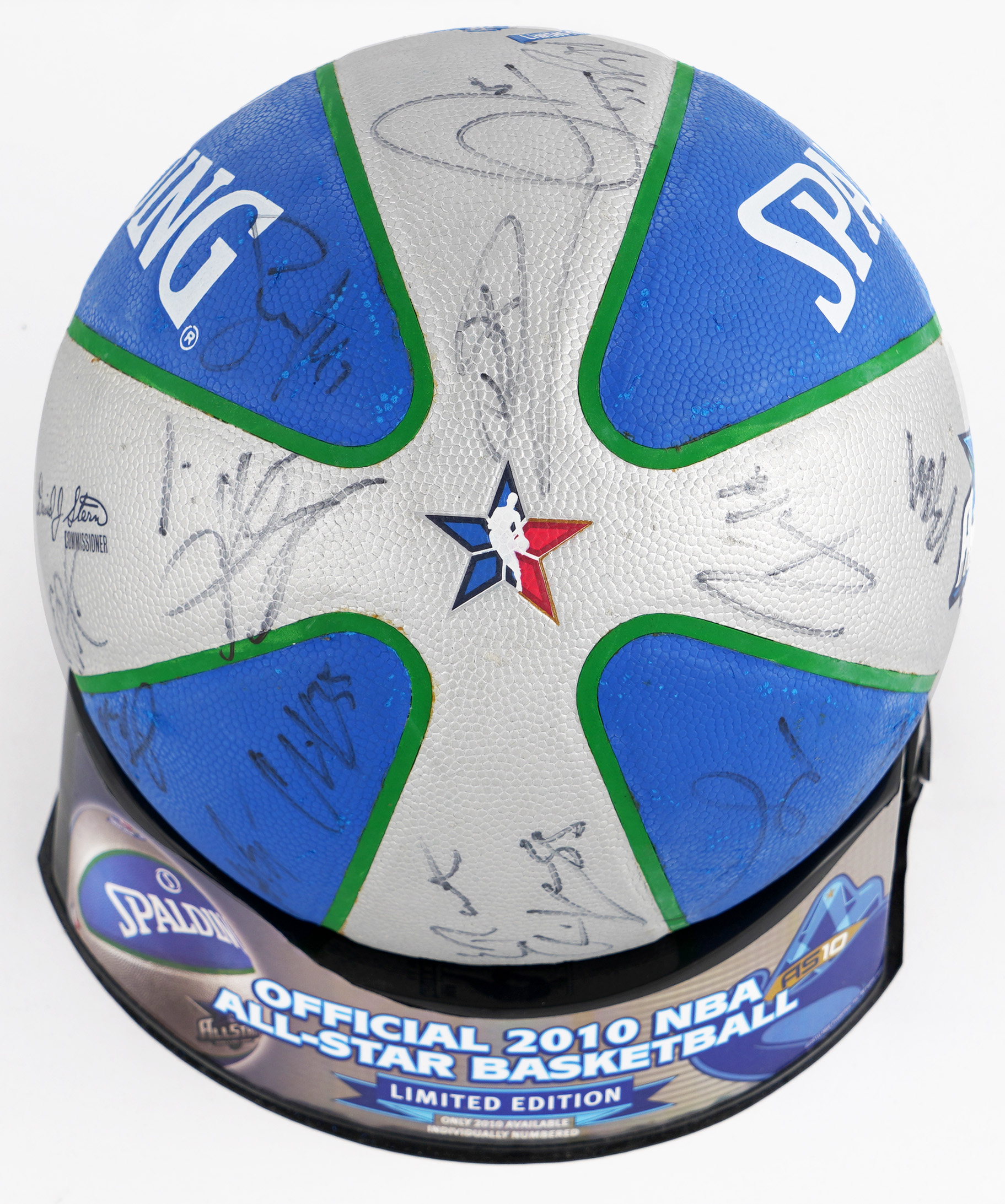 This colorful NBA Spalding Official All Star Ball Dallas 2010 has been signed by players from the game as witnessed by a representative of NBA Properties and comes with their LOA and list of signees.
