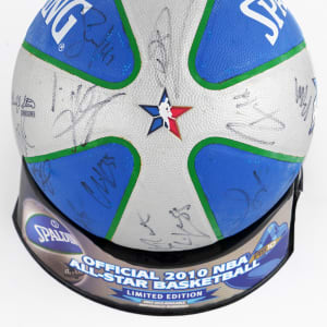 Signatures average (“5 to 7”). The ball comes with a Spalding Official 2010 NBA All-Star Basketball Limited Edition display stand.