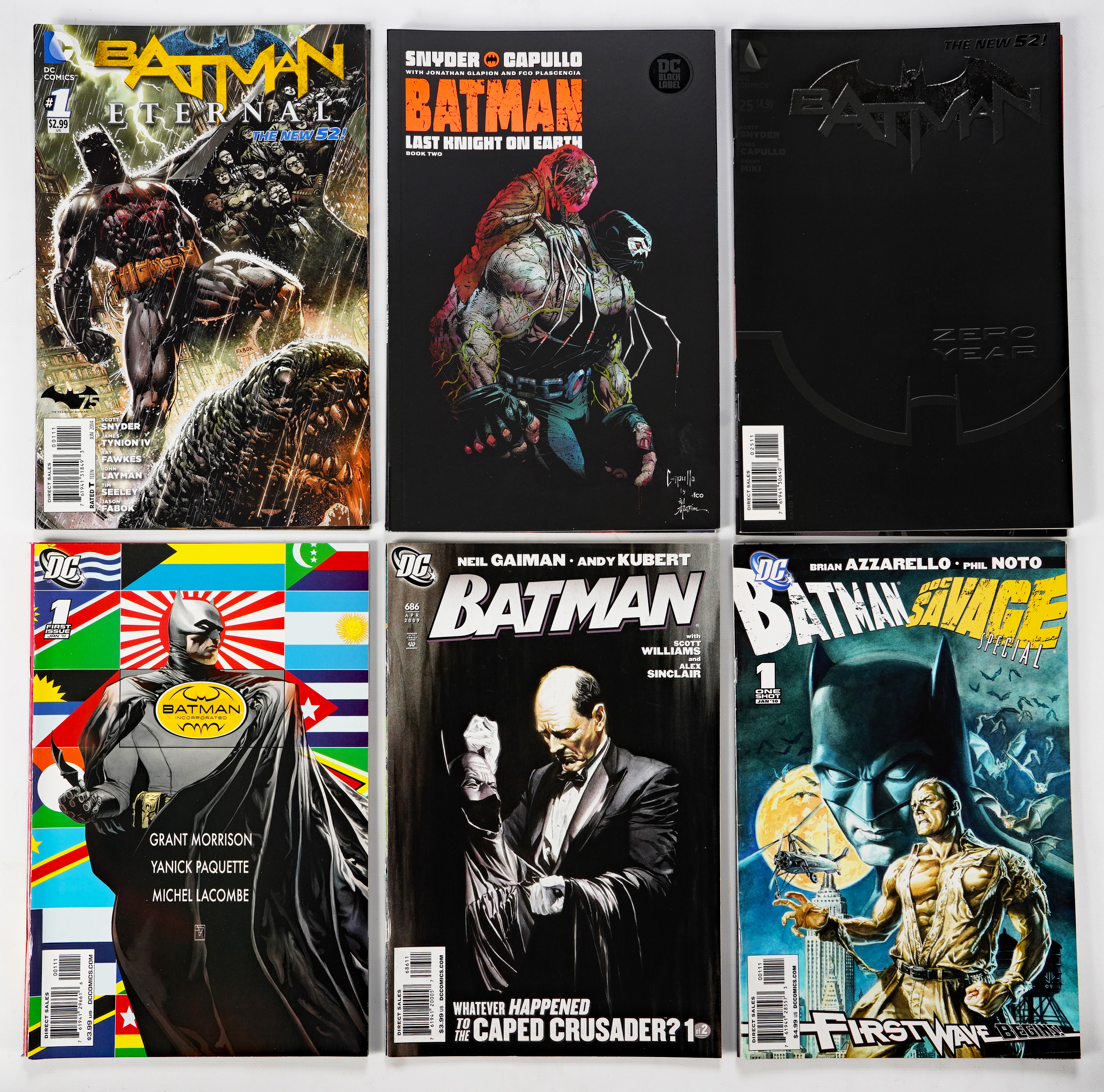 Gates of Gotham #1 (F/VF), Batman Incorporated #1 (VF), The Next Batman #1 (VG), Batman Detective Comics: Death in the Family #15 (VF), Batman #686 (VG), Batman & Robin #9 (VG), Batman/Doc Savage special (G), Batman/Catwoman 100 Page Spectacular (NM), Batman #1 (NM) Synder & Capullo run