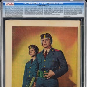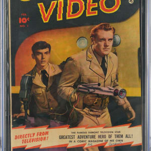 Blast off for a great collecting adventure, when you link up with this 2/51 Fawcett Publications Captain Video #1 issue. Spun off from the 1949-1955 DuMont Television Network nightly series “Captain Video and His Video Rangers”, this vintage key issue is an early example of TV heroes making the leap to print. This Sci-Fi classic is fronted with a compelling photograph cover of the Captain and his teenage sidekick Video Ranger. CGC has supplied a grade of 6.5, Off-White Pages for this Golden Age treasure, a very respectable grade for a comic dating from so long ago. Label notes are “George Evans art. Photo cover. Back cover photo pin-up.”.