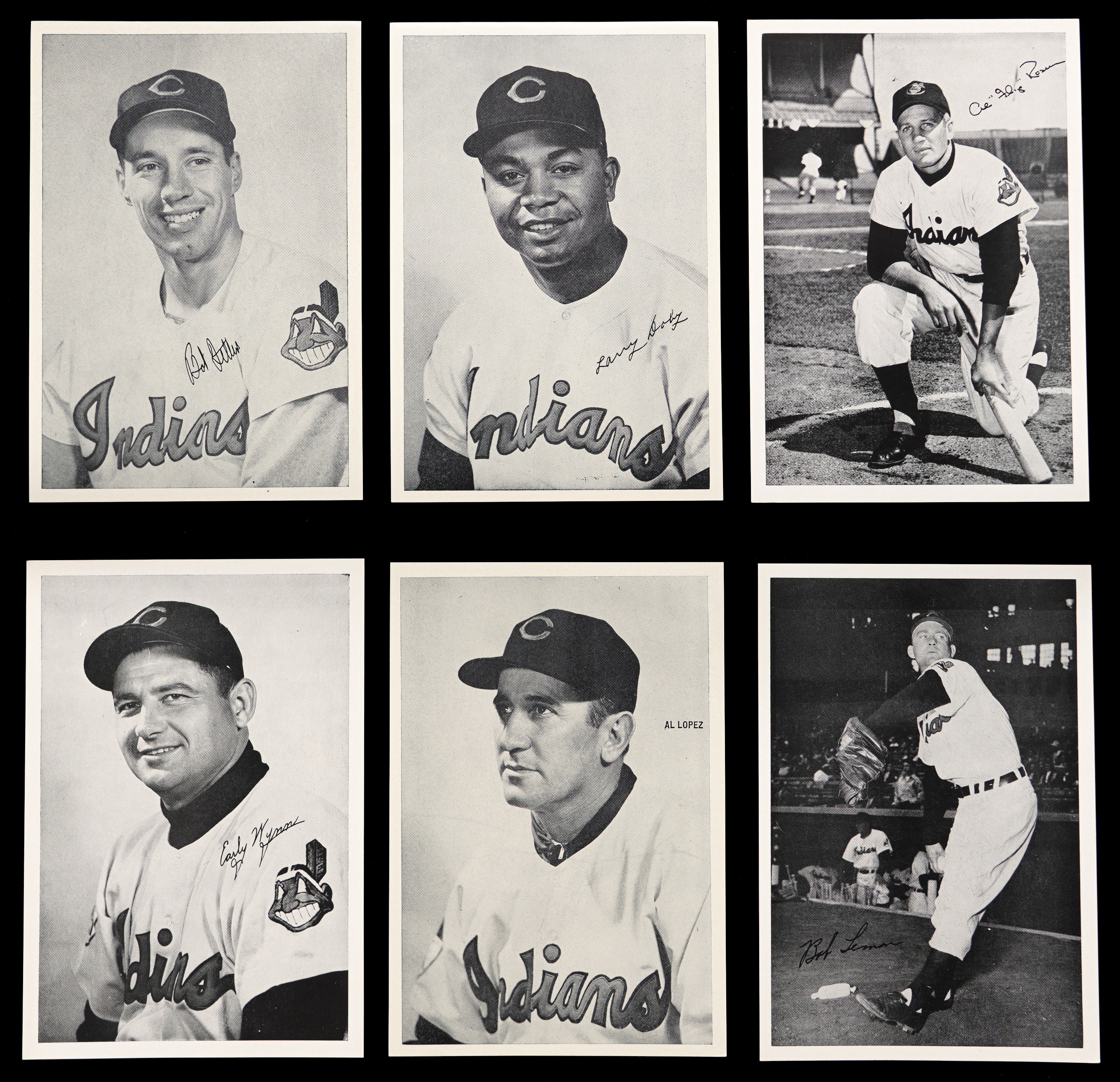 1954 Indians Photo Pack: (25 pictures, average NM) with Doby (NM), Feller (EX-MT), Lemon (NM), Lopez (NM), Newhouser (NM), Wynn (NM);