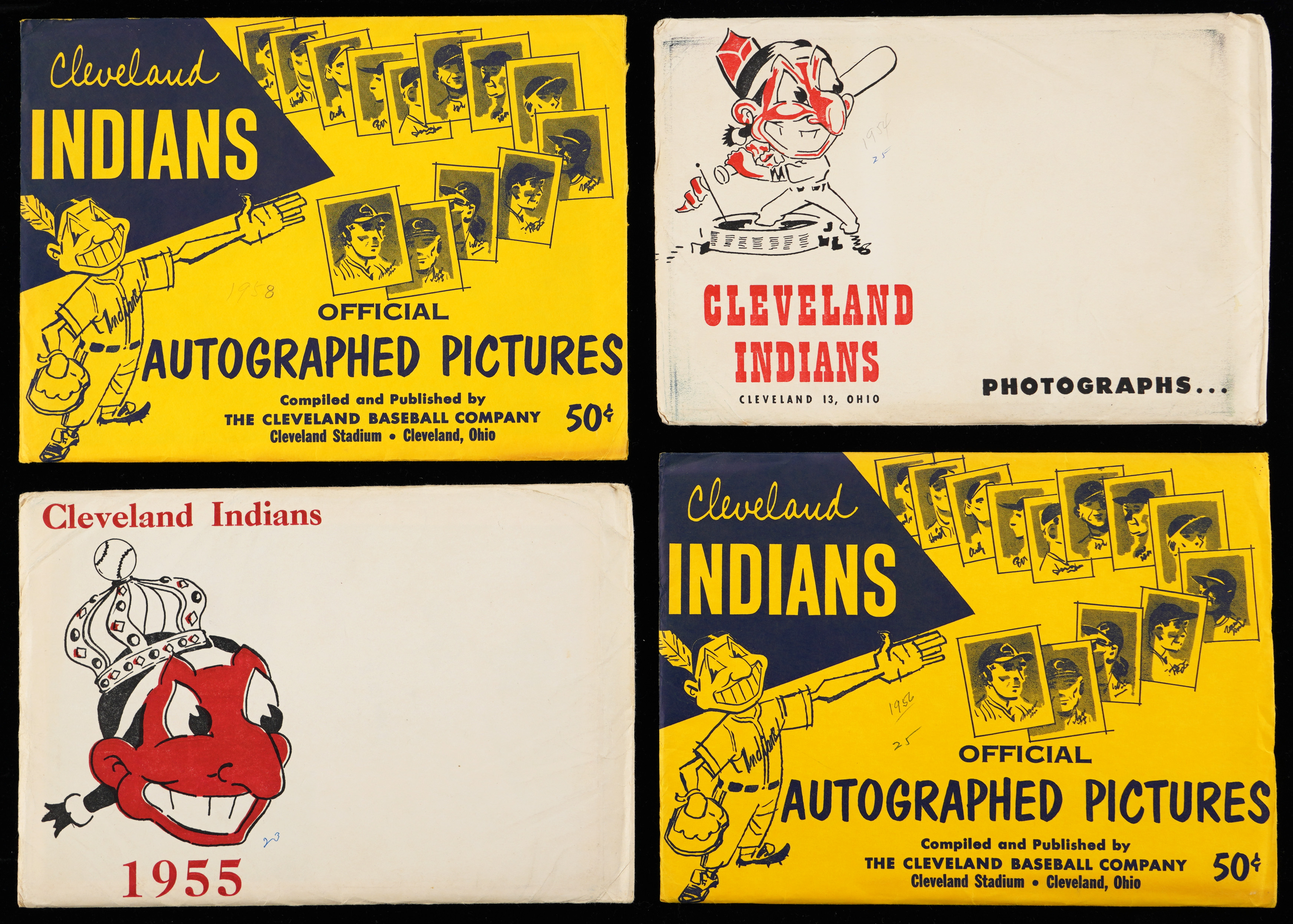 A blast from the past for Tribe faithful is available with these four 1954-1958 Cleveland Indians team photo packs. These crisp black-and-white action poses are stored in their original mailing envelopes. The mailers display varying degrees of storage wear or written notations. Highlights include: