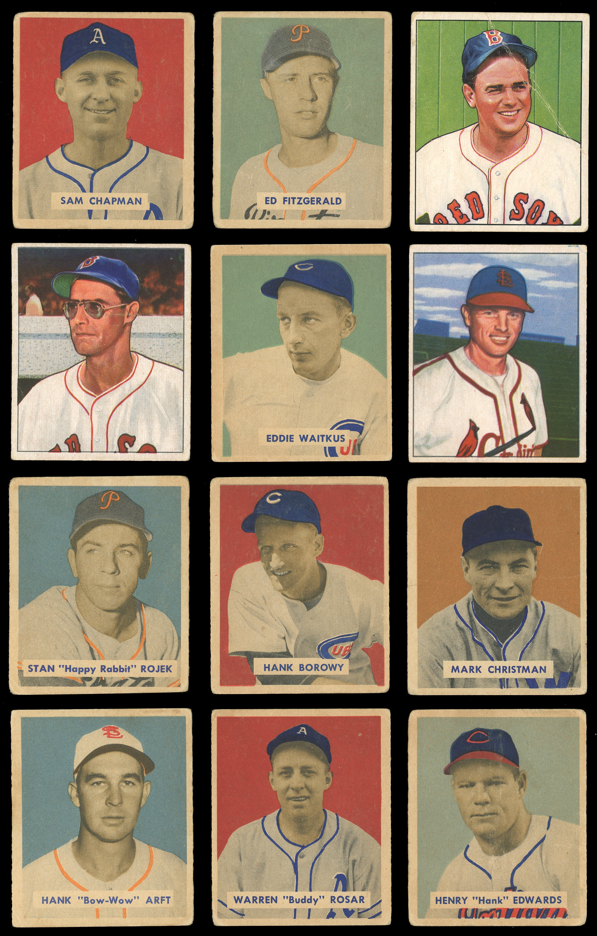 1950 Bowman: (11 cards, average GD, includes one SGC graded and 2 low numbers) with signed #35 Slaughter (“9-10”, card VG), 45, signed #78 M. Owen (“7”, card GD), 89, #98 T. Williams (SGC VG 3), 128, 153, 184, 207, 238, 239;