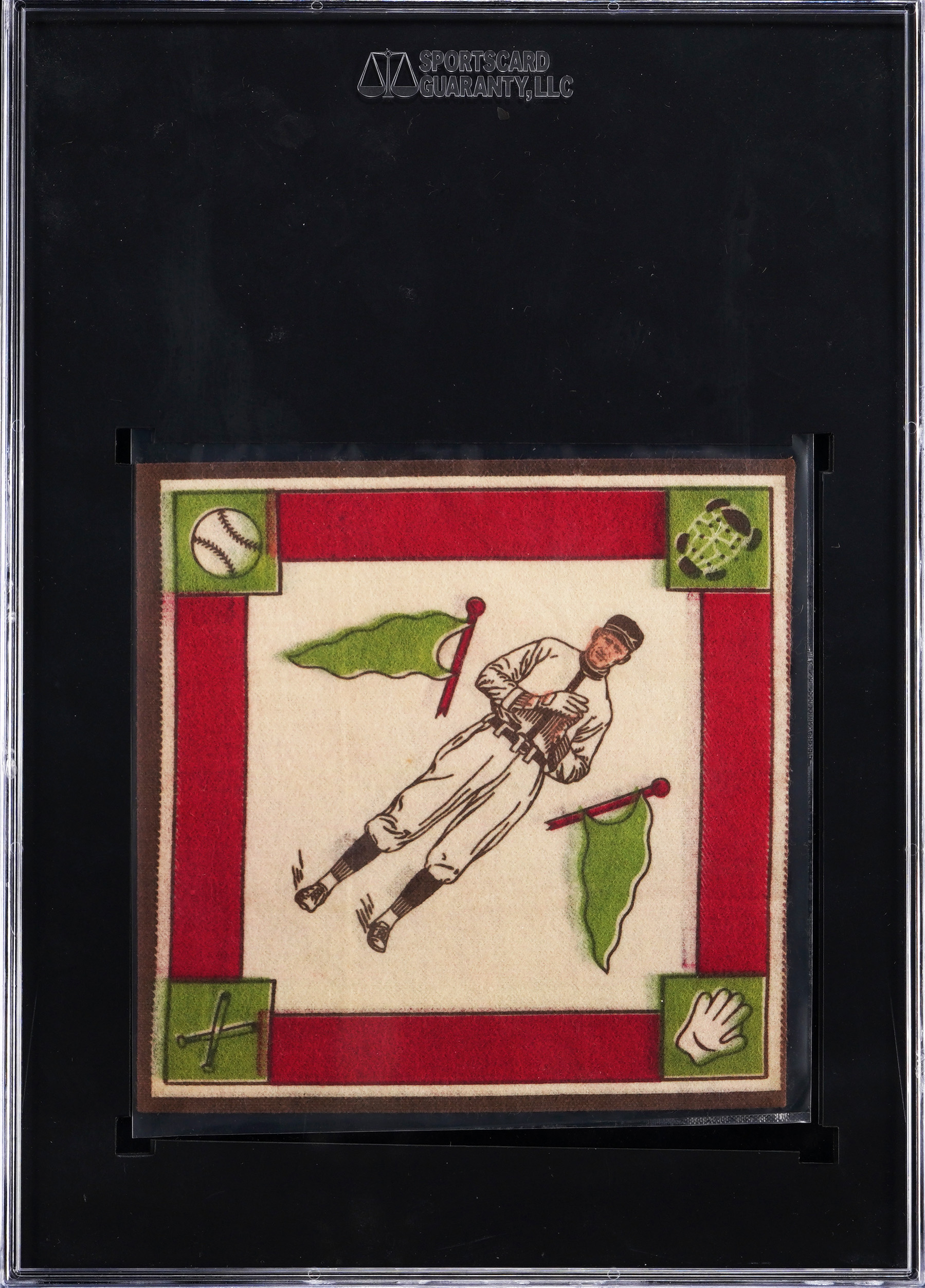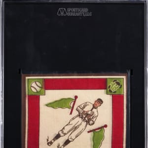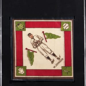 Graded Authentic by SGC. Class of 1936 Hall of Fame enthusiasts will enjoy the offered 1914 B18 Blankets Walter Johnson "Green Pennants" example. Despite the illustration of Washington Senators fireballer being slightly mis-pressed, this artifact otherwise showcases vibrant surface colors, completely unfrayed edges and residue/stain-free surfaces.
