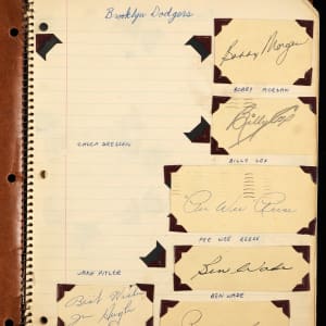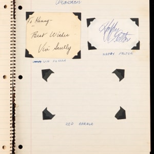 1953 Scrapbook (49) signatures with: signatures with auction LOA from James Spence/JSA: “Preacher” Roe, Jim Hughes, Ben Wade, “Pee Wee” Reese (HOF), Billy Cox, Bobby Morgan, Robin Roberts (HOF, X2), Jerry Staley, Ray Jablonski, Eddie Yuhas, “Red” Schoendienst (HOF), Solly Hemus, Enos Slaughter (HOF), Stan Musial (HOF), Mike Garcia (d.1986), Early Wynn (HOF), Bob Feller (HOF), Bob Lemon (HOF), Phil Rizzuto (HOF), “Happy” Felton (d.1964, announcer), Vin Scully (HOF, announcer); and signatures offered without authentication due to time/cost restraints, that are presumed genuine: Bobby Morgan, Joe Black, George Shuba, Dick Williams (HOF), Russ Meyer, Curt Simmons, Hank Thompson, Daryl Spencer, Larry Jansen (X2), Bill Rigney, Bobby Thompson, Don Mueller, Al Dark, Ruben Gomez, Virgil Trucks, Al Rosen, Tom Gorman, Hank Sauer (X2), Paul Pettit, Vic Janowicz (two-sport star), Mike Sandlock, Cal Abrams, Eddie Pellagrini, Phil Montemayor, Frank Thomas.