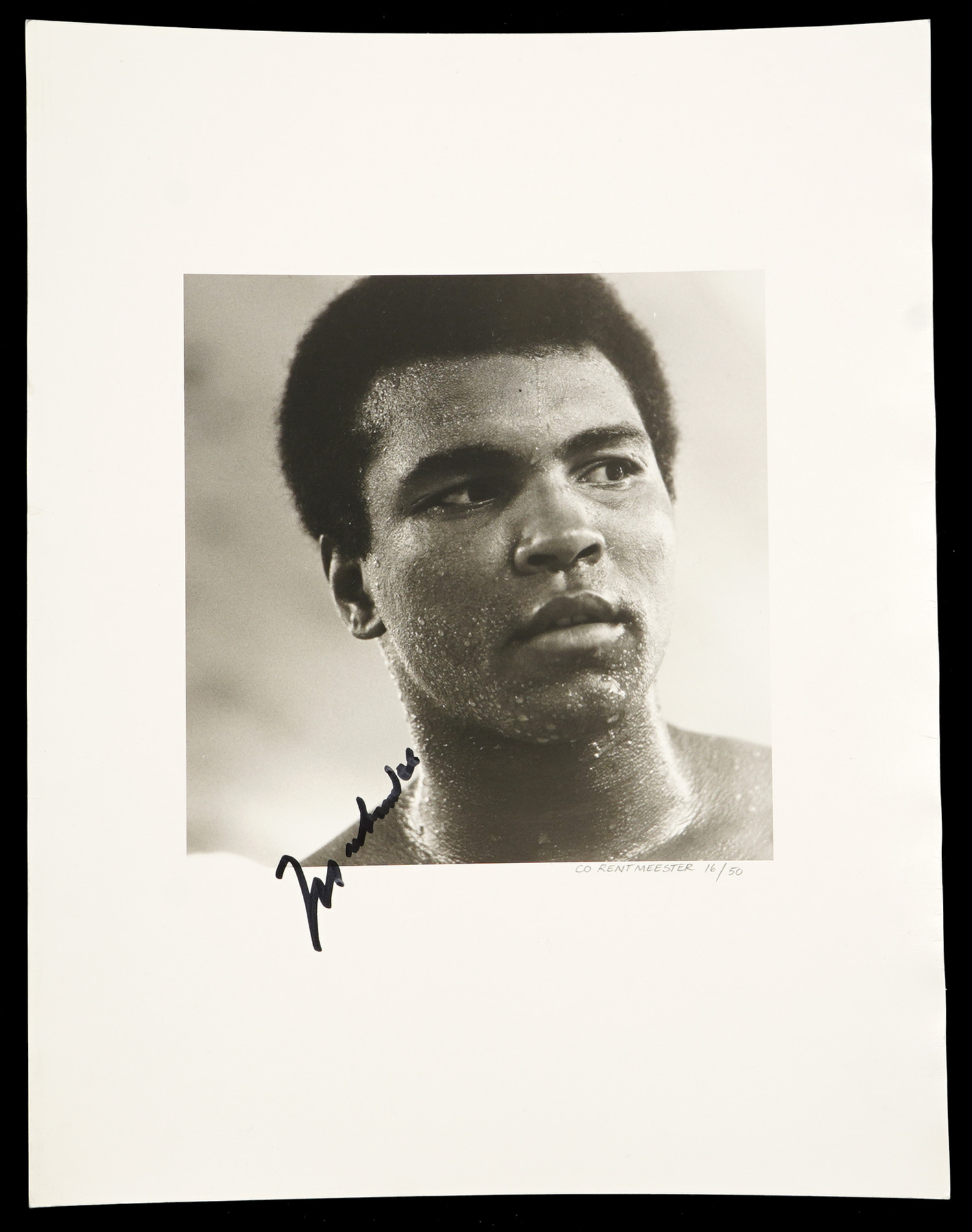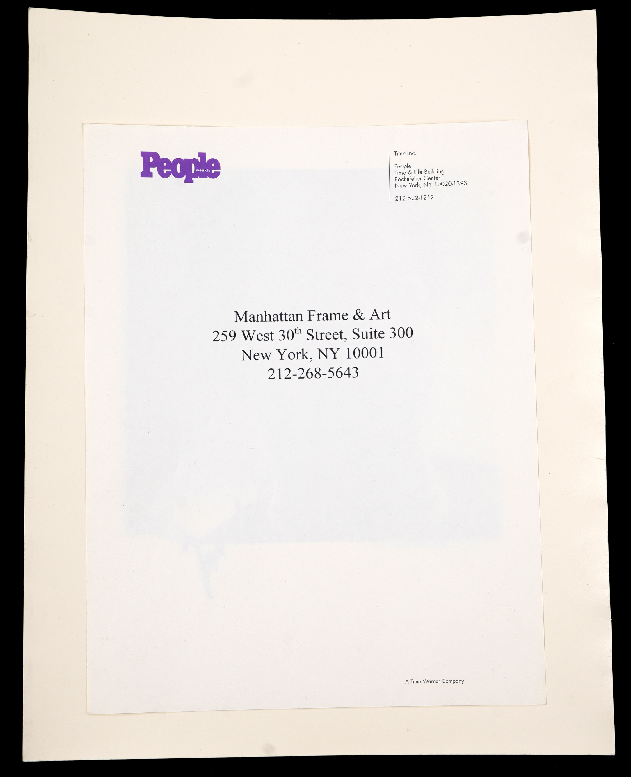 Serially numbered #16/50. A candid Muhammad Ali signed People Magazine limited edition print. The former "Louisville Lip" displays a more pensive disposition on this black-and-white print that measures nearly 11x14 and is suitable for framing and prominent display. The vertical black Sharpie autograph presents an overall ("8-9") in both strength and quality. Housed in its original black portfolio with an accompanying note on People Weekly letterhead. Auction LOA from James Spence/JSA.