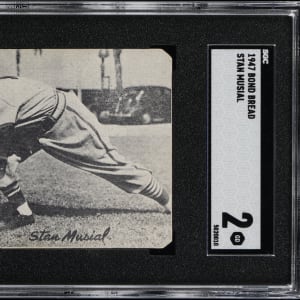 Graded GOOD 2 by SGC. Horizontal oddball card of St. Louis Cardinals Hall of Famer Stan Musial.