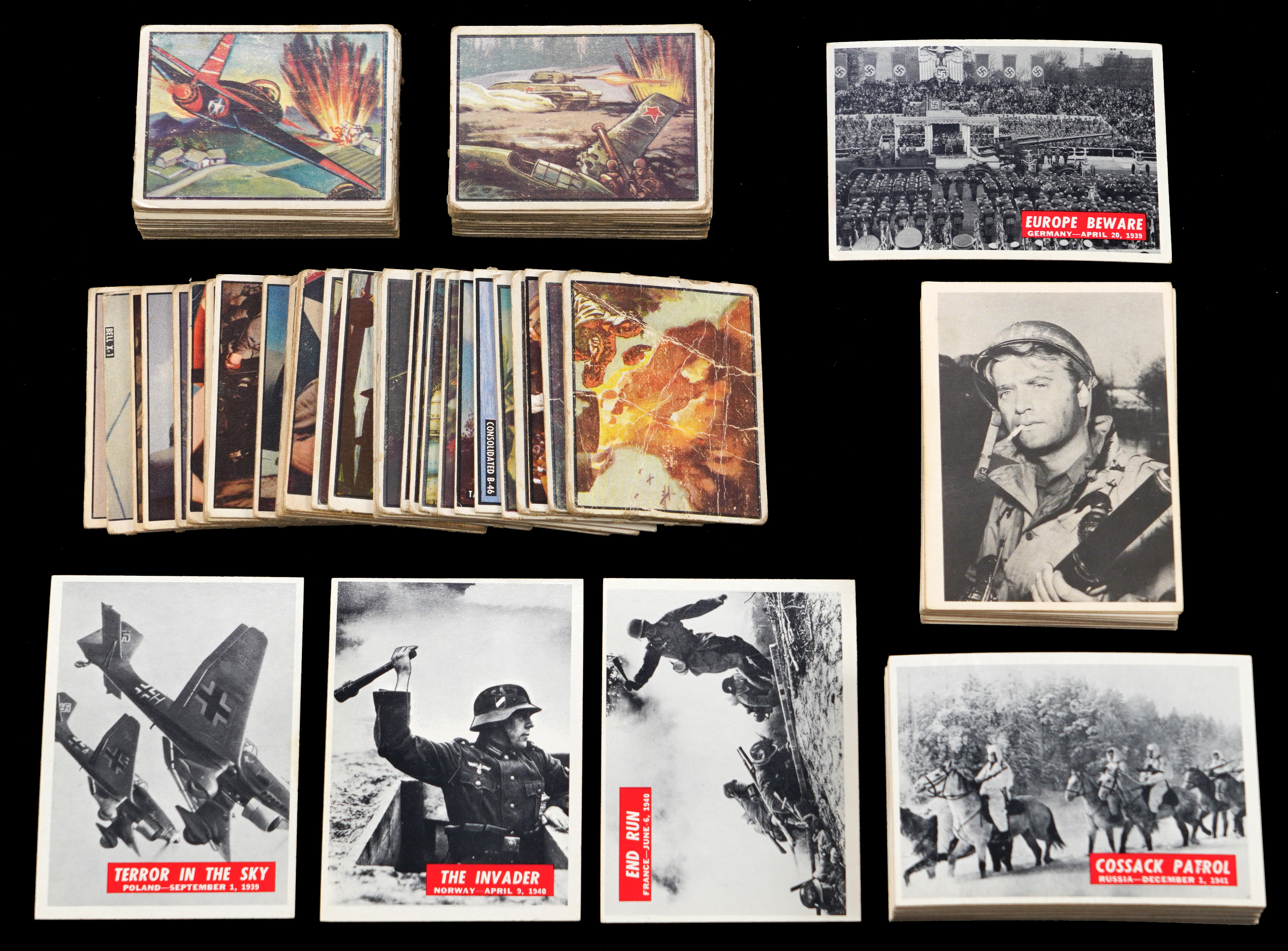 The global conflicts of World War II and the Korean War are chronicled with the offered 1950-1965 non-sport war themed collection of (260) cards. The following triumphs and tragedies are highlighted: