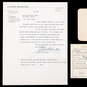J. Stuart Blackton (d.1941) signed 1940 TLS ("9"), with content regarding a "Queen Elizabeth historical film", which is likely in reference to his 1923 film "The Virgin Queen".