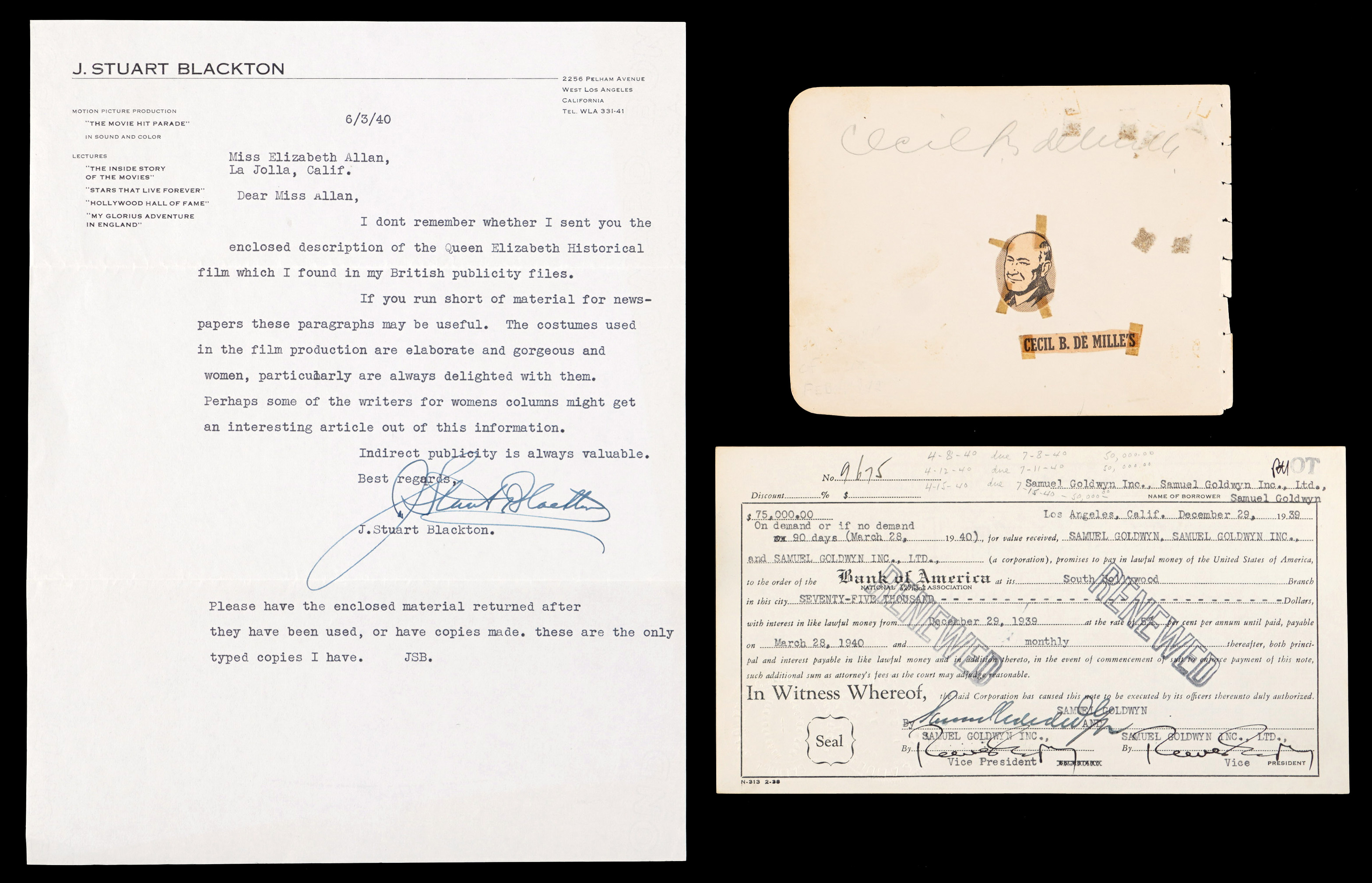 Samuel Goldwyn (d.1974) signed 1939 Bank of America $75,000 promissory note ("9.5");