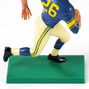 Make a determined dash to the bidding end zone, for this 1959-1963 Hartland Plastics John Arnett Los Angeles Rams football running back statue. Decorated on the front of the base with a gold facsimile signature, this dashing fellow cuts a very handsome figure. The pants have toned to a cream shade, a little of the luster is off, and a few minor wear spots are detected under magnified scrutiny. However, to the naked eye this vintage shelf-sized icon is highly appealing, with bold paint, decent gloss, and full jersey numbers, making it worthy of an (EX+) rating.