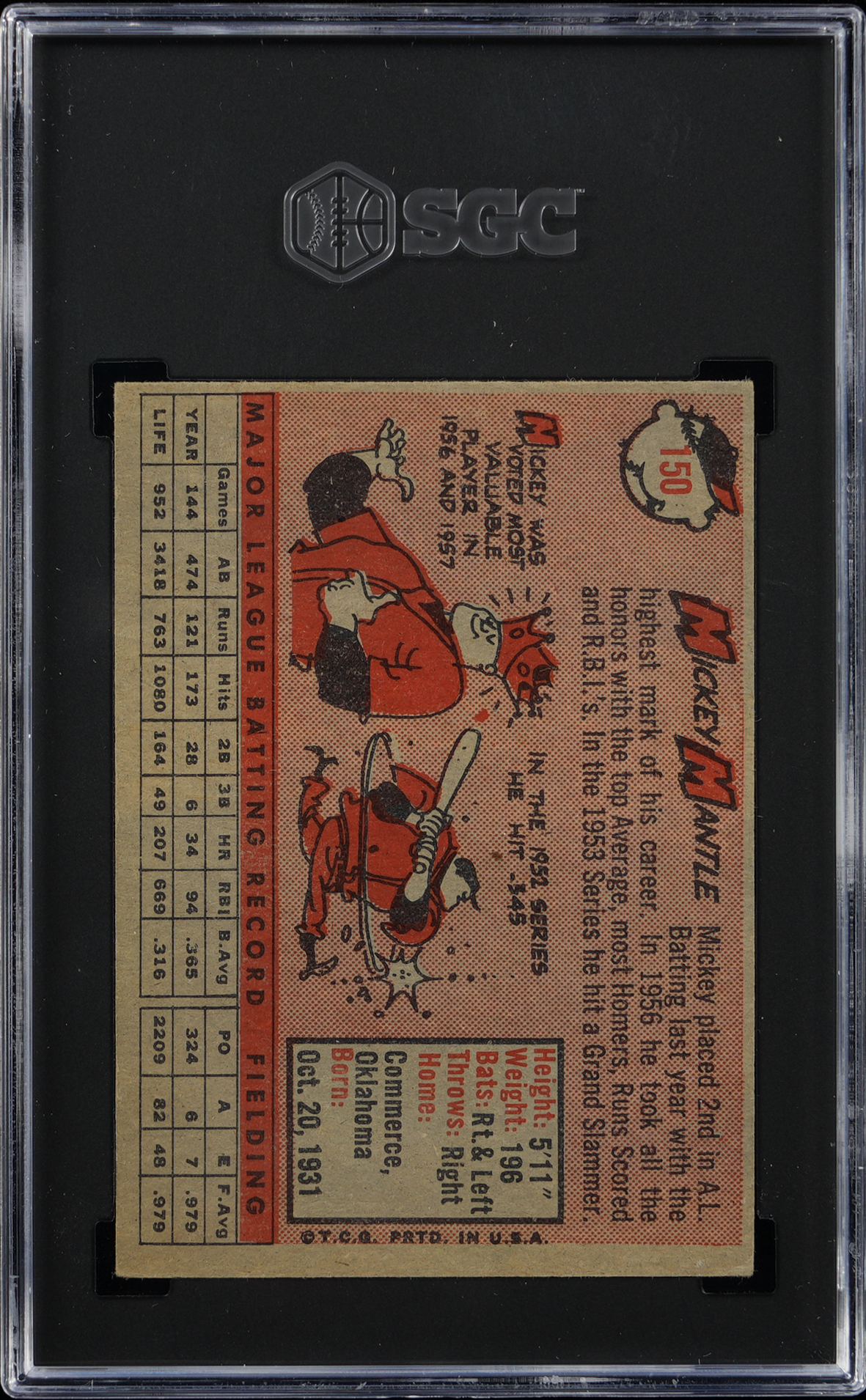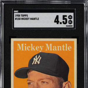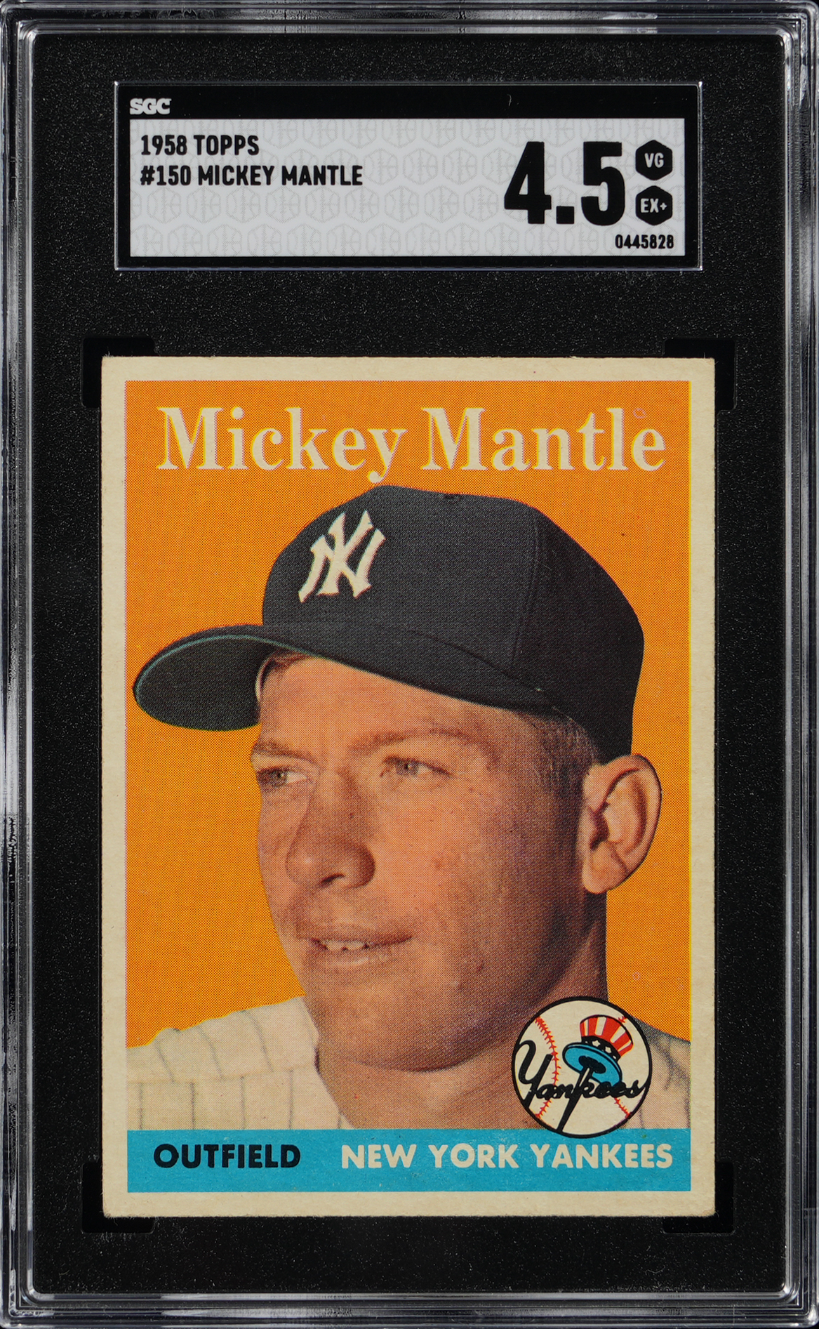 Graded VG/EX+ 4.5 by SGC. Powerhouse 1958 Topps #150 Mickey Mantle. This late '50s Mick is ideal for both player and set collectors.
