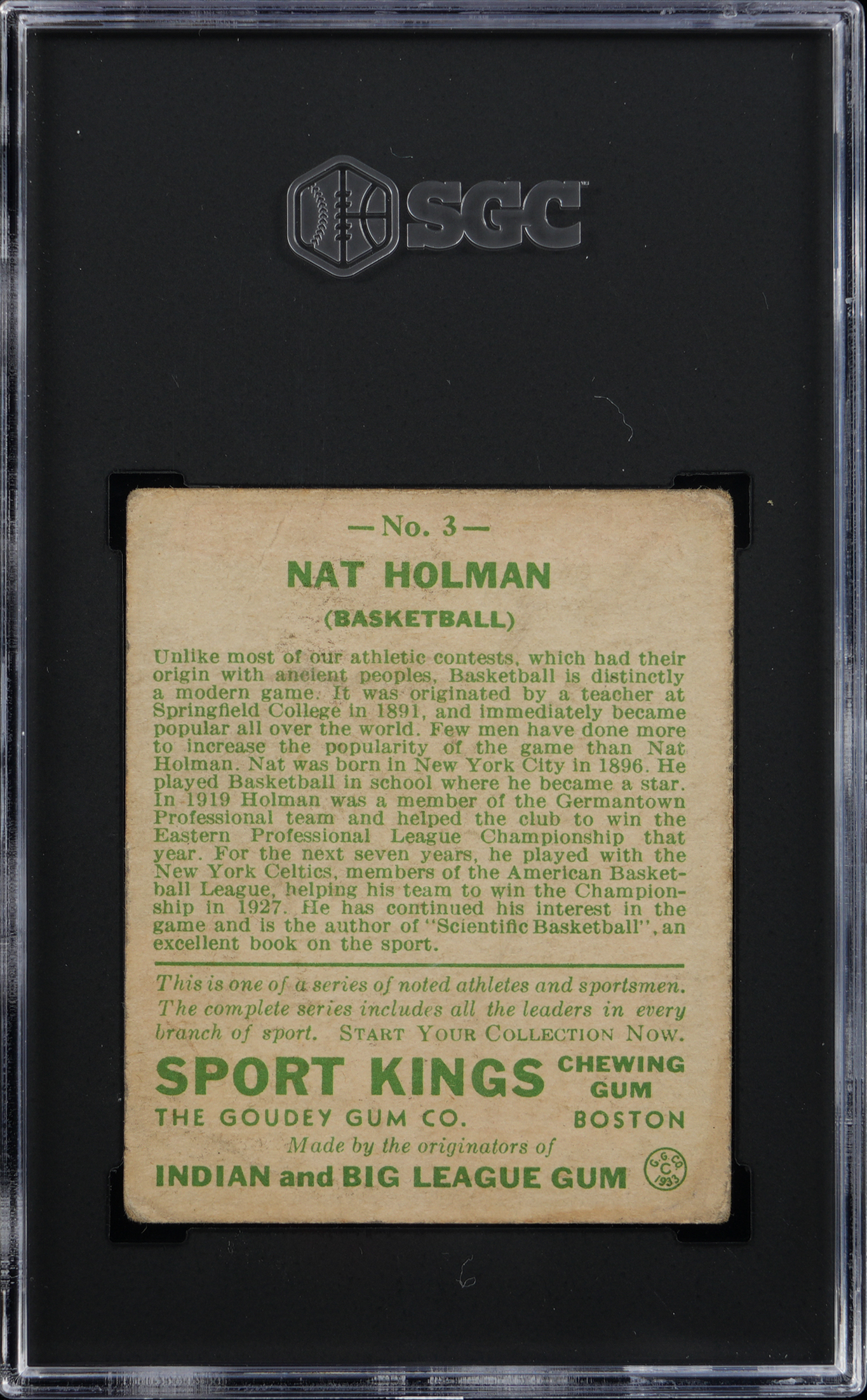 Graded FAIR 1.5 by SGC. Class of 1964 Basketball Hall of Famer Nat Holman. Original Celtics (not Boston Celtics) star player.