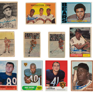 Football: (9 cards) with 1964 Philadelphia #17 Ditka (VG), 1968 Topps: (3 cards, average VG, all Bears) with #75 Sayers (VG), #127 Butkus (VG); 1969 Topps #26 Piccolo RC (NM), 1972 Topps #110 Sayers (EX-MT), 1984 Topps #280 Dickerson RC (EX);