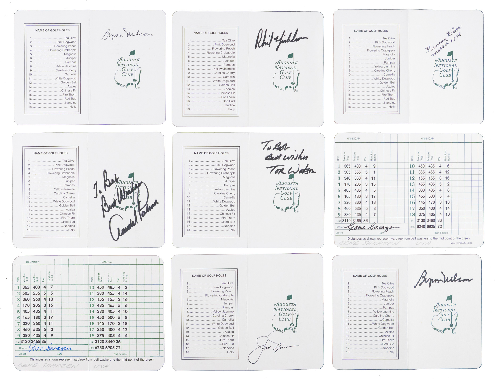 This group of (30) signed Augusta National Golf Club scorecards dated 9/93 have been signed by Masters Tournament champions. Scorecards average EX-MT or better and the signatures average (“8 to10”). Some of the signatures have personalization.