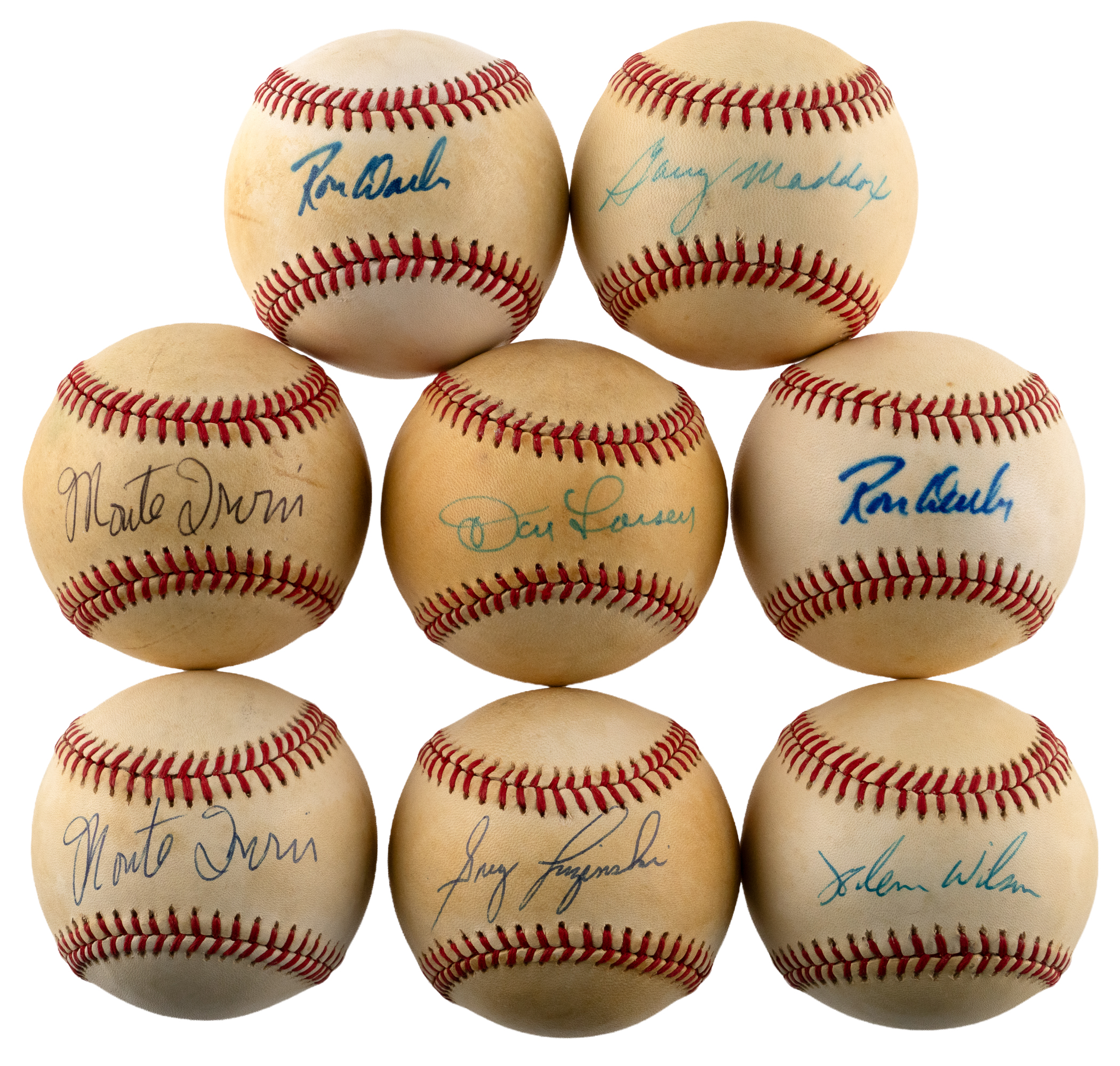 Robin Roberts, Stan Musial, Enos Slaughter “1-14-86,” Brooks Robinson (PSA Sticker, no Cert), Monte Irvin (2, one with sticker only), Don Larsen, Greg Luzinski, Willie Wilson, Ron Darling (2), Gary Maddox, George Foster, Don Baylor, “Mudcat” Grant, Keith Hernandez.