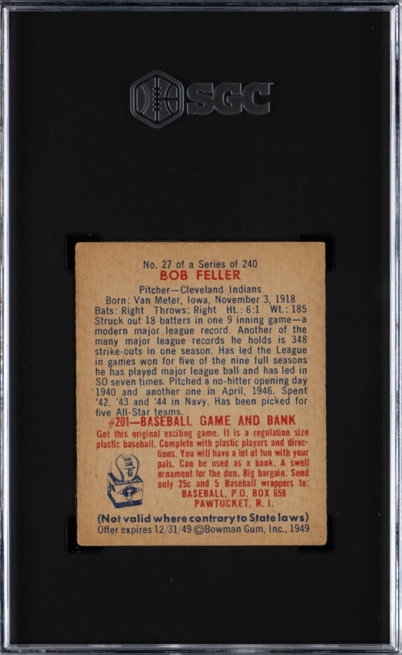 Graded EX 5 by SGC. Cleveland Indians Hall of Fame pitcher Bob Feller.