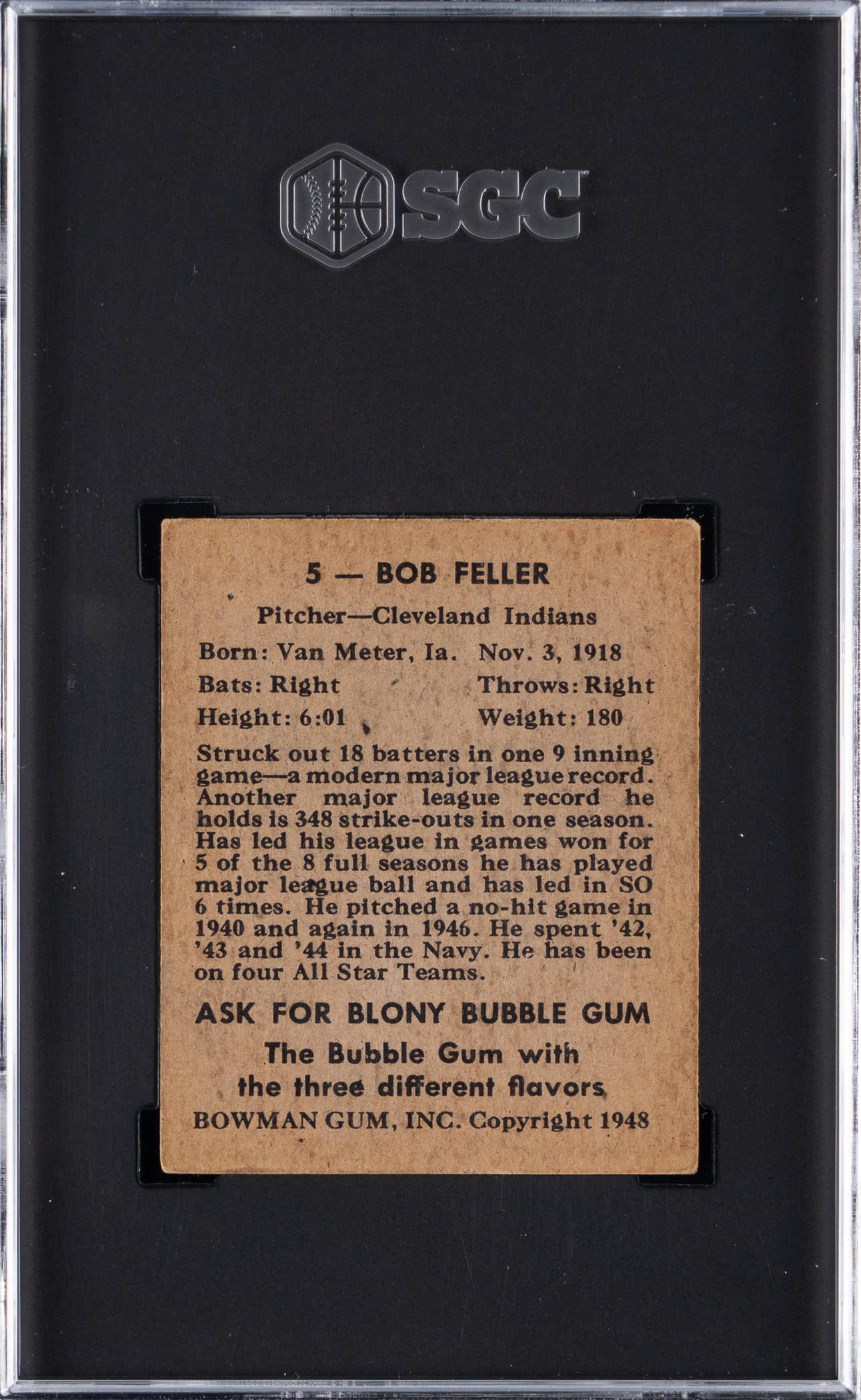 Graded VG/EX 4 by SGC. Cleveland Indians Hall of Fame pitcher Bob Feller.
