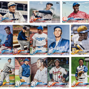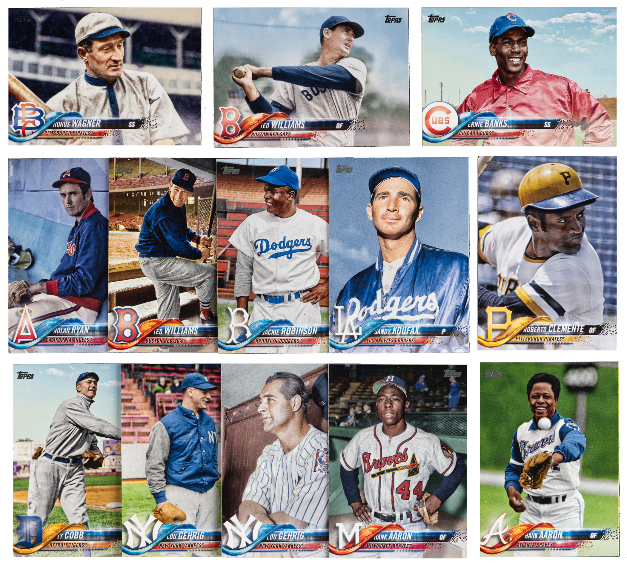 Presented is a 2018 Topps Legends variations near complete set of (41/50) cards. Includes shortprinted Hall of Famers and stars from both the flagship and Updates & Highlights product lines. Includes: #351 Cobb, #351 R. Jackson, #384 Banks, #400 Wagner, #431 Henderson, #436 Maddux, #450 Bench, #462 O. Smith, #500 Sandberg, #503 Brett, #510 C. Jones, #515 Mattingly, #544 Clemente, #550 J. Robinson, #556 T. Williams, #582 Aaron, #585 McCovey, #605 F. Thomas, #618 Gehrig, #629 Koufax, #650 Gibson, #US1 Ryan, #US9 Clemente, #US20 Mattingly, #US21 Koufax, #US23 Boggs, #US23 P. Martinez, #US31 C. Jones, #US44 Aaron, #US64 T. Williams, #US76 Brett, #US98 R. Johnson, #US101 Clemens, #US121 Henderson, #US111 Gibson, #US118 B. Jackson, #US157 Banks, #US177 Piazza, #US197 W. Clark, #US200 Gehrig and #US259 McGwire.