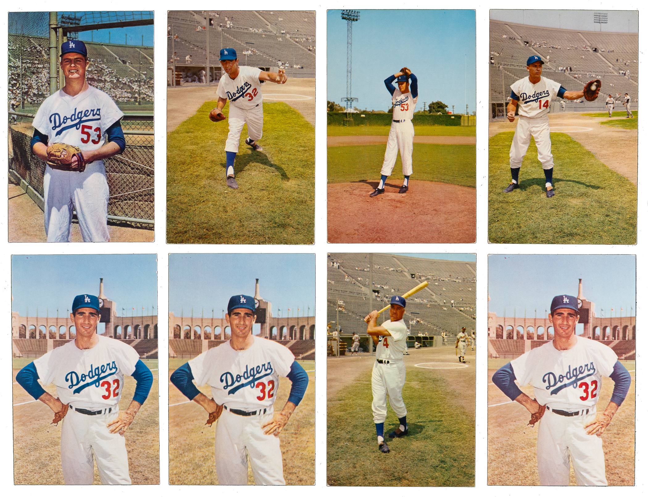 1961 Dodgers Postcards: (46 cards, average VG-EX to EX) with (11) Drysdale (average EX), (3) Koufax ((2) EX, VG-EX);