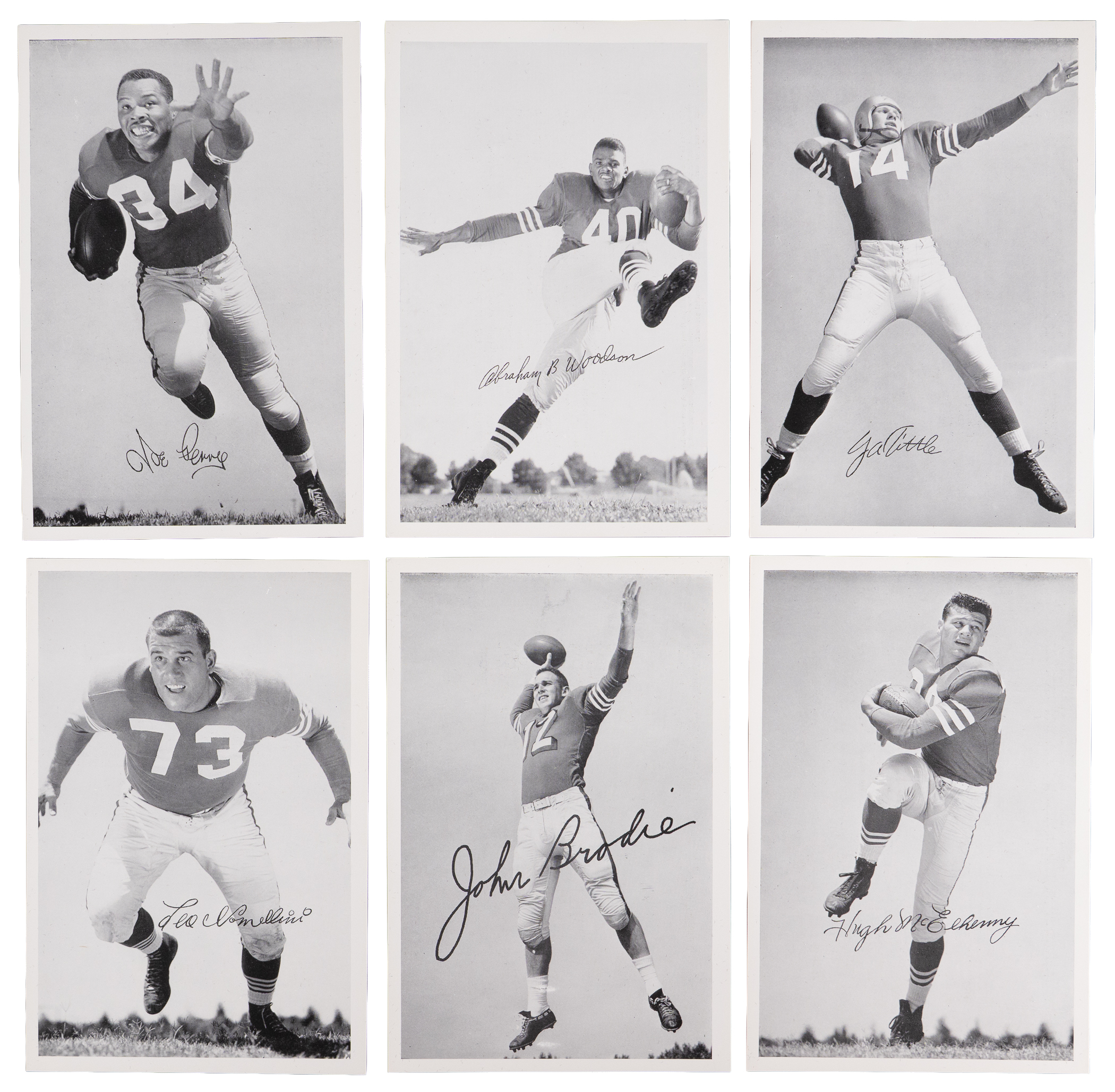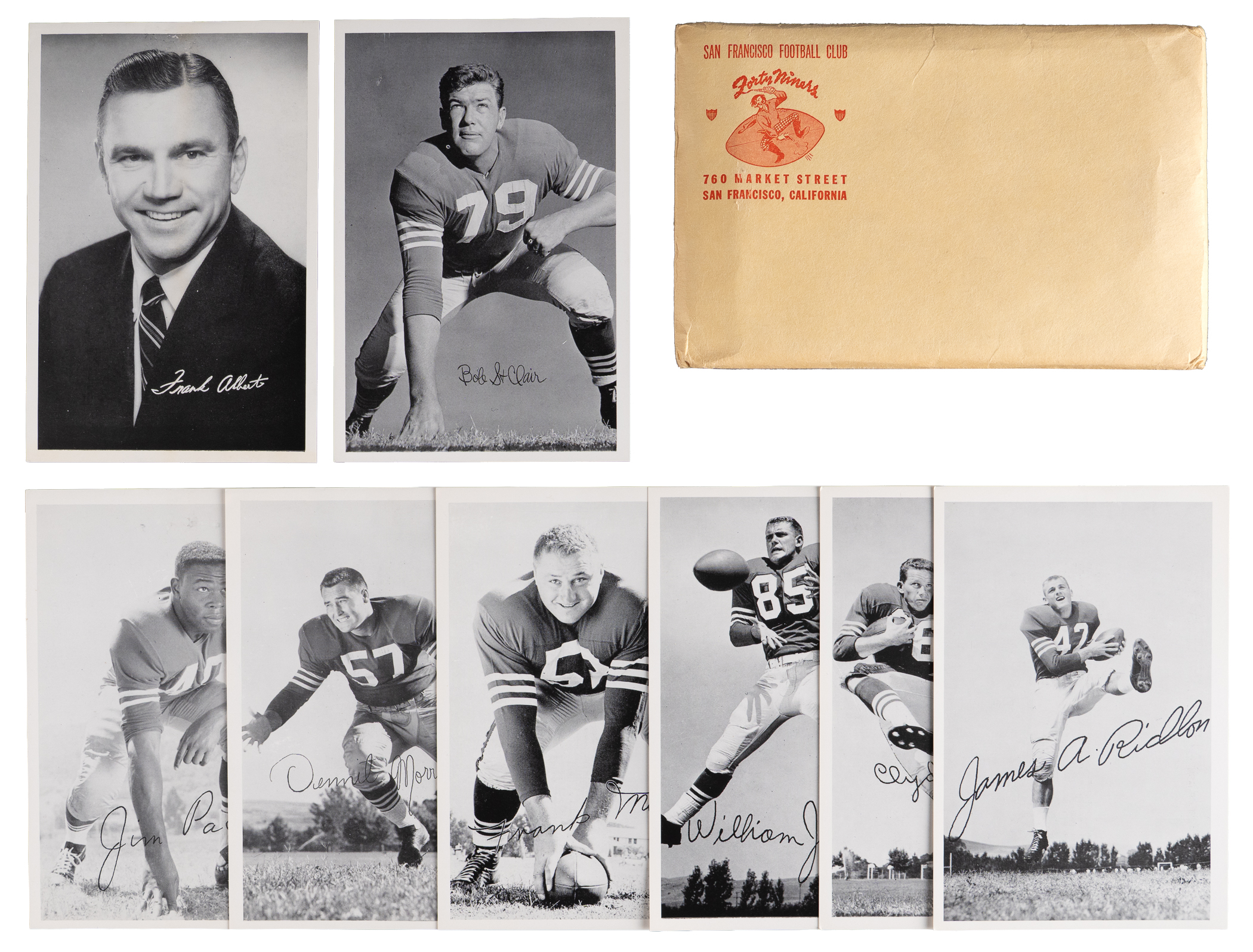 This horde of (10) 1958 San Francisco 49ers Team Sets, in their original envelopes, has 44 cards per set, averaging Near Mint to Mint, never touched or handled. Each set includes Y.A. Title, Joe Perry, John Brodie, Abe Woodson, Bob St. Clair, Leo Nomellini and Hugh McElhenny.
