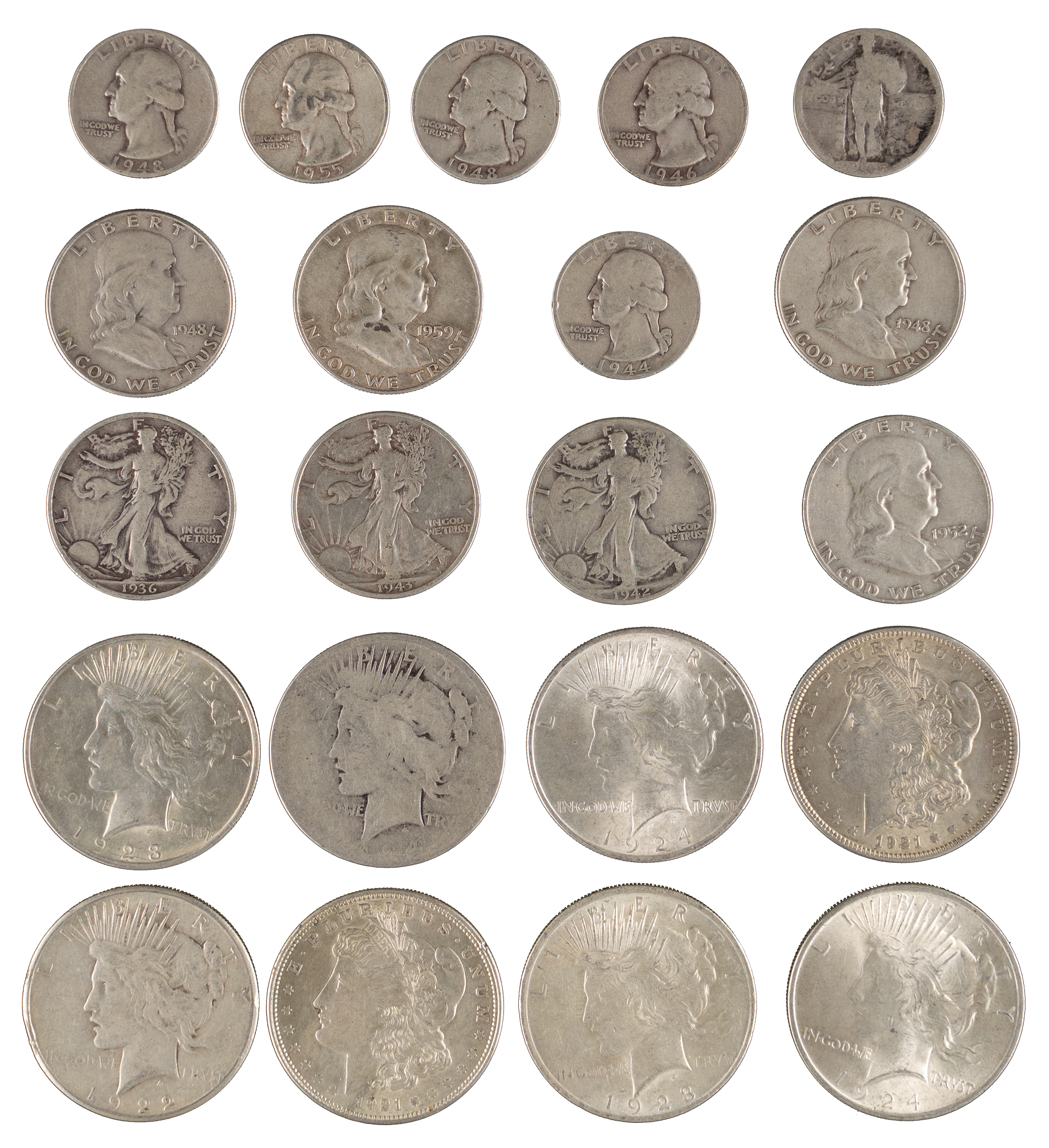 Silver seekers stop here, for this 1920s-1950s silver coin collection (26). Populated with various out of circulation types, this tidy bundle represents significant value.
