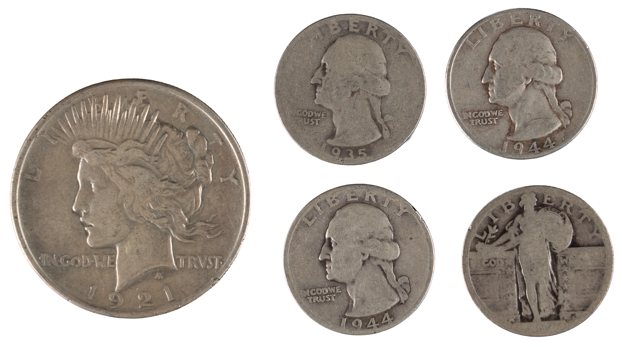 Standing Liberty quarters (2), both with date worn smooth;