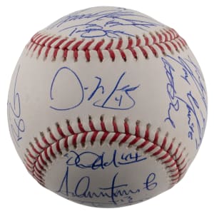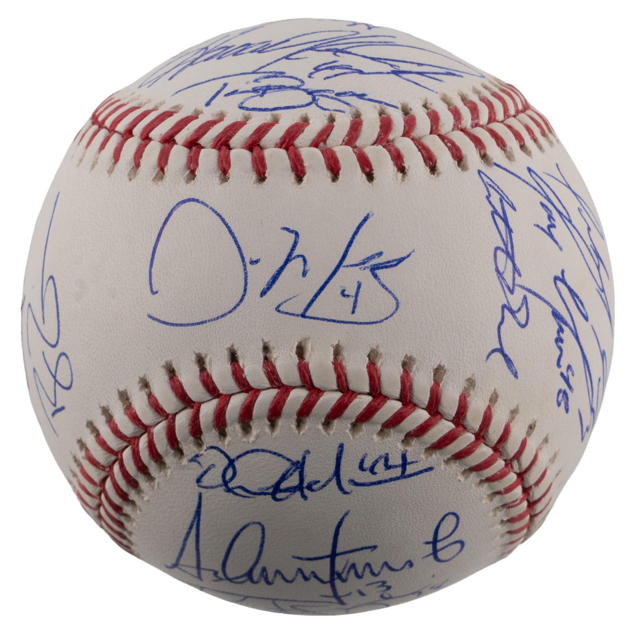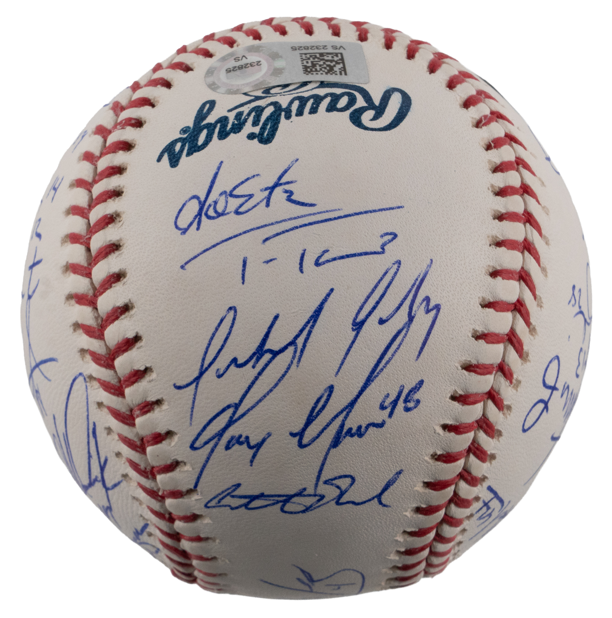In 2019, the Washington Nationals won their first and only World Series in a hard fought seven game series over the Houston Astros. This beautiful white 2019 World Series OML/Manfred ball has been signed by (23) members of the team with some inscribing their uniform numbers. The signatures are beautiful ballpoint averaging (“9-10”). They include Max Scherzer, Juan Soto, Patrick Corbin, Dave Martinez, Ryan Zimmerman, Trea Turner, Steven Strasberg, Anibal Sanchez, Michael A Taylor, Kurt Suzuki, Asdrubal Cabrera, Howie Kendrick, Adam Eaton, Daniel Hudson, Javy Guerra, Kevin Long, Joe Dillion, Chip Hale, Tim Bogart, Paul Menhart, Gerardo Para, Anthony Rendon, Bob Henley. The ball has a Fanatics Sticker and Verification, as well as an MLB Sticker/Hologram. Comes in a Fanatics ball box.
