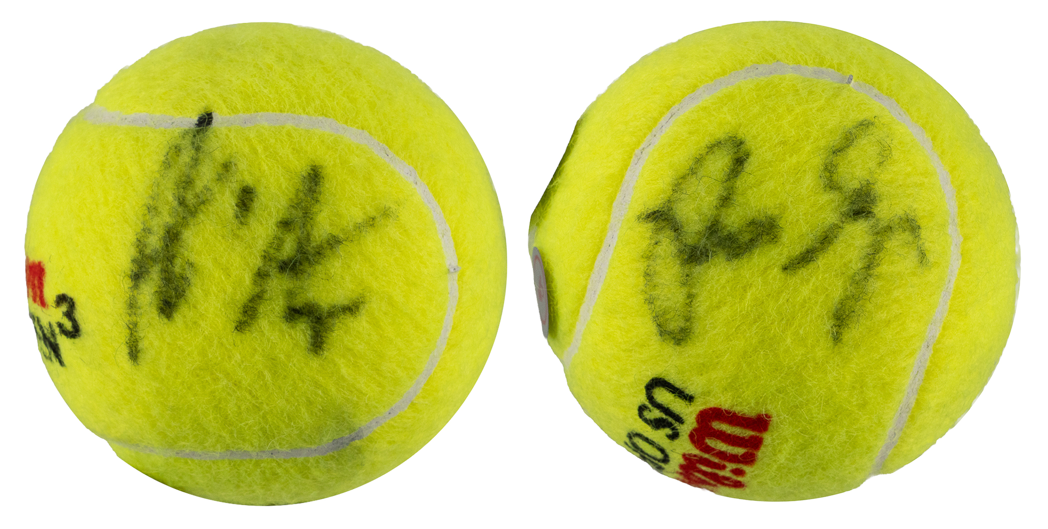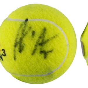 Pete Sampras versus Andre Agassi was one of tennis's greatest rivalries. Their 34 matches spanned 1989 to 2002 with Sampras winning the head-to-head, 20 to 14. This Wilson 3 U.S. Open tennis ball is signed (“7-8”) on the fuzzy surface by the two tennis legends, with Ace Authentic sticker and hologram.